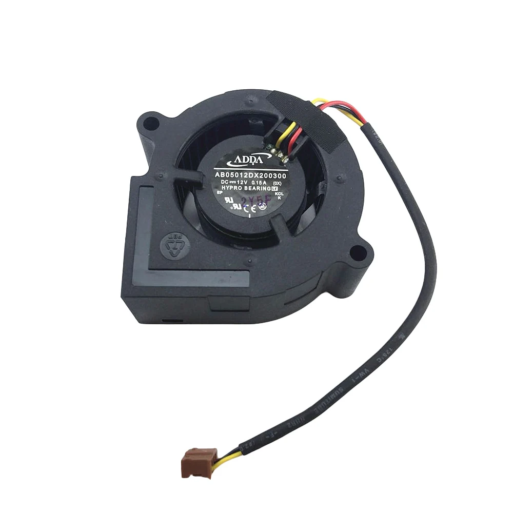 Experience reliable cooling with this high-quality, black circular fan designed specifically for projectors. Its compact metal core ensures excellent heat dissipation, while the textured plastic housing adds durability and a sleek appearance. The white text on the hub clearly displays its model numbers AB05012DX200300 and AB05012DX200600, confirming compatibility with various projector models. The colorful wires—red, yellow, and black—provide easy installation, connecting smoothly to your device's power supply at 12V and 0.15A. Whether you’re replacing an old fan or installing in a new projector setup, this fan’s streamlined, modern design guarantees efficient cooling with minimal noise, for optimal performance and longevity of your electronics. Trust in this fan to keep your equipment running smoothly.
