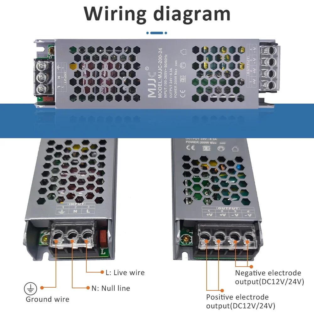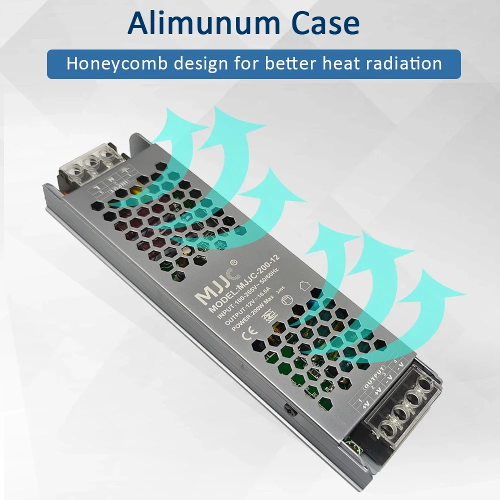 - Offers versatile output options of DC 12V or 24V, accommodating different LED strip and lighting systems with high efficiency.