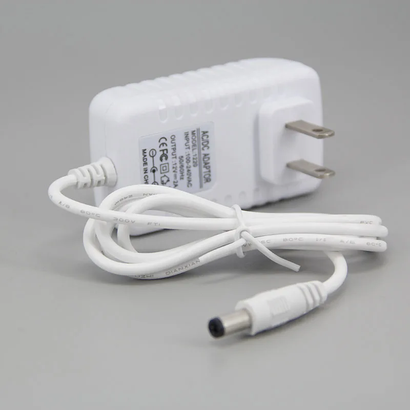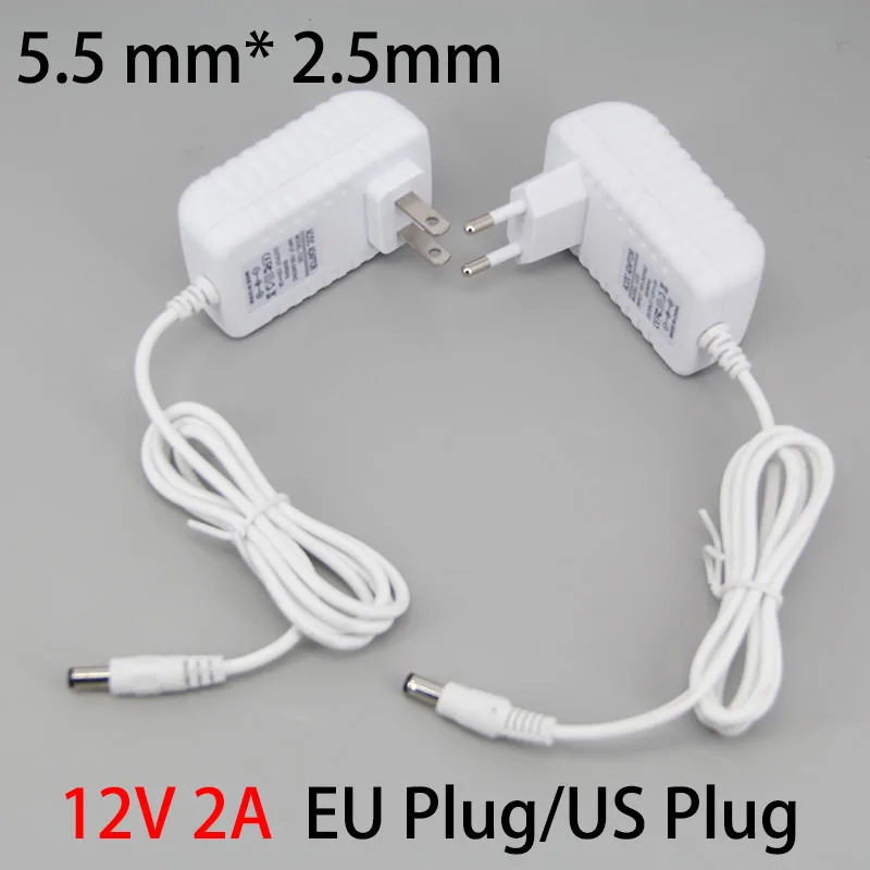 Experience peace of mind with this high-quality power supply, designed to seamlessly power your devices. Featuring a sleek white finish and minimalist rectangular shape with rounded edges, it embodies a modern, functional aesthetic. The ribbed surface adds subtle texture, while the lightweight construction ensures portability. Compatible with various standard DC sockets including 5.5mm x 2.5mm and 5.5mm x 2.1mm, it is ideal for LED strip drivers, small electronics, or other appliances requiring a 12V 2A power source. The 1-meter flexible cable provides ample reach, and the device incorporates multiple safety measures such as overcurrent and short-circuit protection. Its universal input voltage of 100-240V makes it suitable worldwide, adding to its versatility and dependability.