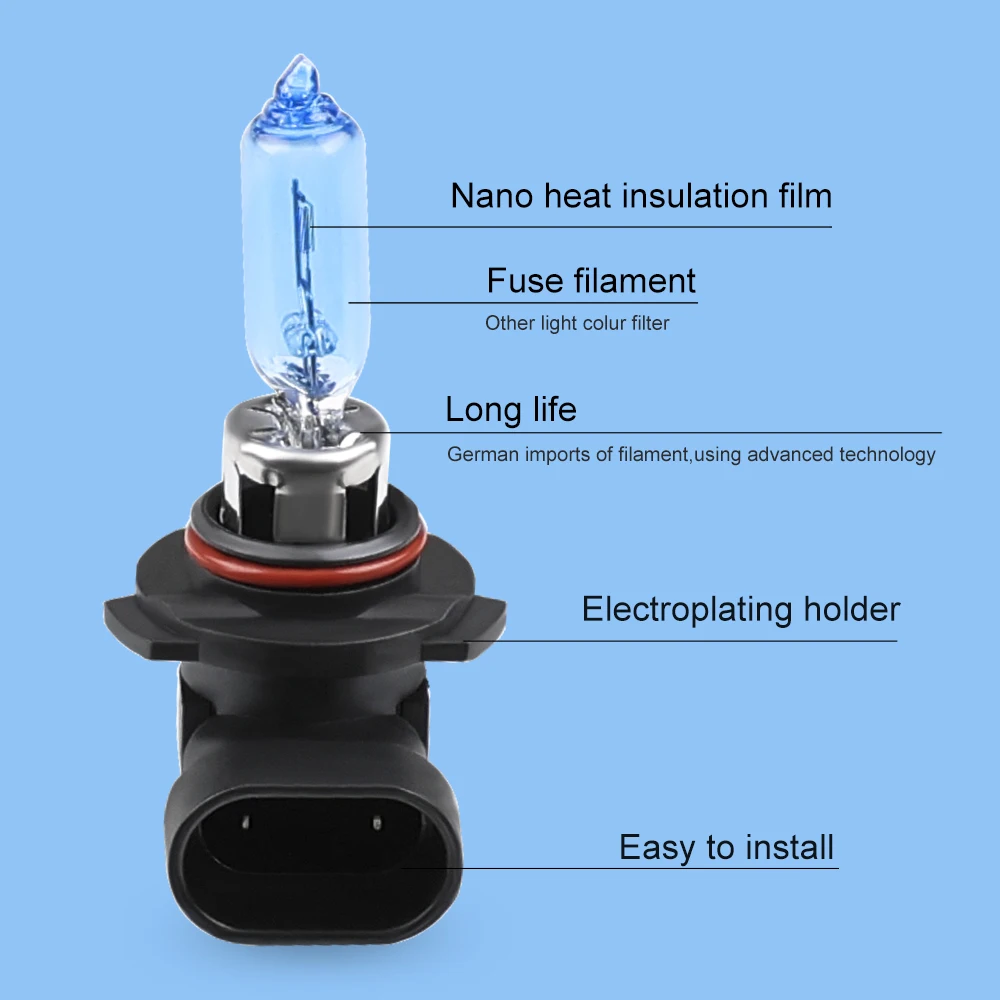 - The bulbs feature quartz glass construction with a stylish blue coating for a super white 6000K light emission, providing intense brightness and a modern look to your vehicle lighting system.