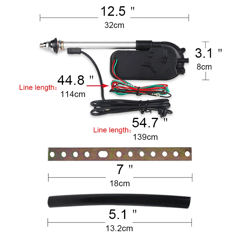 Enhance your vehicle’s radio reception with this durable 12V automatic telescopic antenna. Crafted from stainless steel and aluminum, it extends approximately 780mm when fully extended and features a sleek, modern design with a shiny metallic finish. The kit includes a 1200mm cable for flexible installation and a sturdy mounting base for secure attachment. Operating at 10-14V DC with a current of 0.7±0.2A, it offers reliable AM/FM reception within the 88-108 MHz range. Waterproof and built for long service life exceeding 50,000 cycles, the antenna automatically retracts or extends when powered, ensuring seamless integration with your vehicle’s exterior while maintaining a rugged and sophisticated aesthetic.