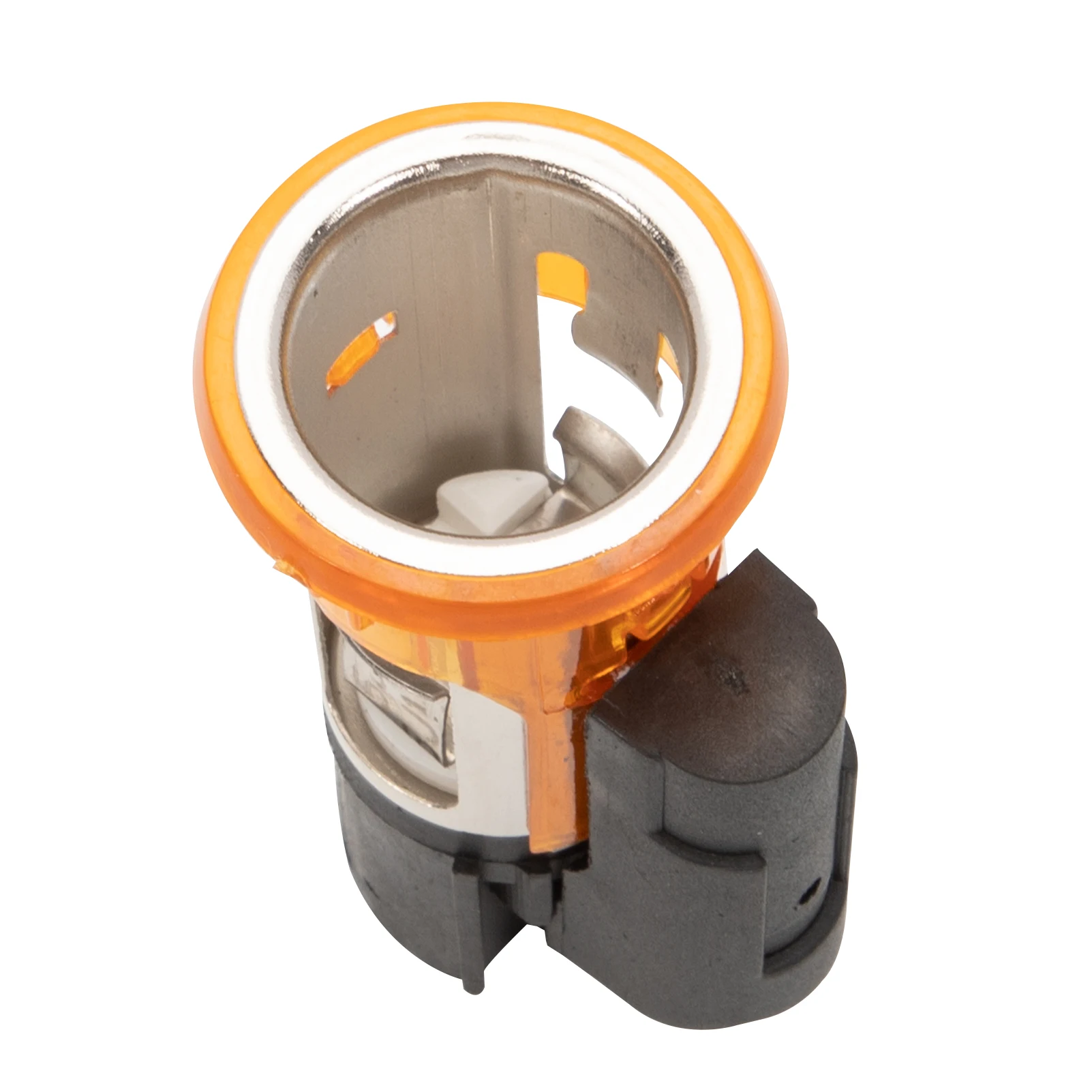 Experience seamless functionality with this sleek replacement socket specially designed for your vehicle. Its cylindrical shape features a sophisticated metallic silver base with concentric ridges, providing a modern, industrial aesthetic. The black plastic top is marked with a clear white cigarette icon, offering intuitive use. The housing combines black and vibrant orange translucent plastic, revealing the fuse inside, which emphasizes safety and ease of maintenance. Perfect for restoring power outlets in your Peugeot or Citroen, this durable, compact component is built to last, with fine workmanship and heat-resistant ceramic protection inside. Its precise design ensures easy installation, making it an ideal choice to maintain your vehicle's electrical system and enjoy reliable power connections on the go.