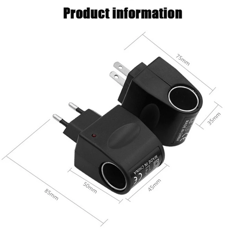 Experience the convenience of this sleek, compact black car cigarette lighter adapter, designed to seamlessly convert AC power from your household socket into a steady 12V DC output. With its minimalist rectangular shape, smooth rounded edges, and metallic rim surrounding the socket, this adapter blends modern style with practical function. The small, recessed oval top adds subtle visual interest, while the red power indicator enhances usability. Weighing just 55 grams and measuring approximately 6cm by 4cm by 5cm, it is highly portable. Whether at home or on the road, this adapter enables safe, low-power appliances like aromatherapy devices, oxygen bars, or transmitters to operate smoothly, expanding your device capabilities comfortably.