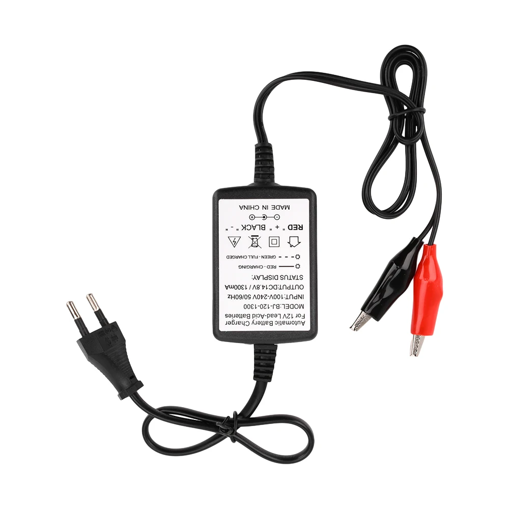 - Input voltage of AC 100-240V at 50/60Hz, with an output voltage of 13.6V to 14.8V and a current of 1.3A, optimized for fast and safe charging cycles.