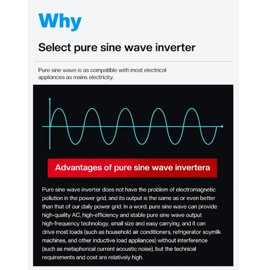 Elevate your power needs by choosing this pure sine wave inverter. Perfect for anyone who desires reliability and efficiency in power conversion, this inverter meets all technical requirements while maintaining a stylish look. Whether you're running appliances at home or equipment on the road, you’ll appreciate the seamless operation this inverter provides. Invest in the functionality and peace of mind you deserve.