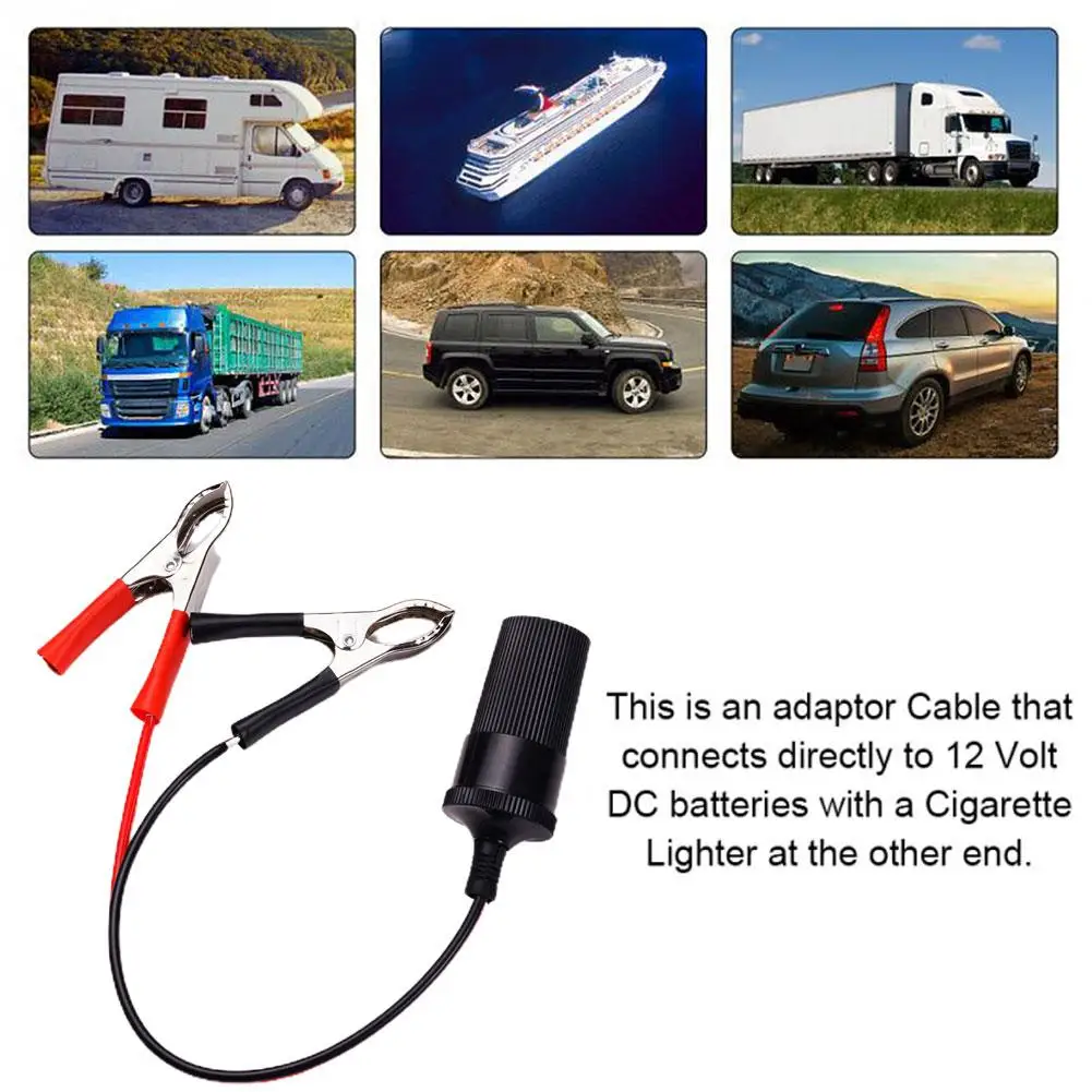 - This power cable features a black, textured, cylindrical adapter with a female cigarette lighter socket suitable for most 12V plug-in devices. Its matte finish enhances durability and provides a sleek look.