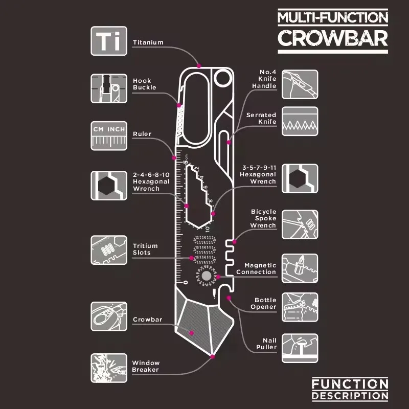 Keys features of the this 13-in-1 Titanium EDC Multitool