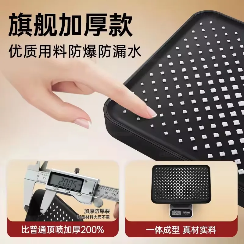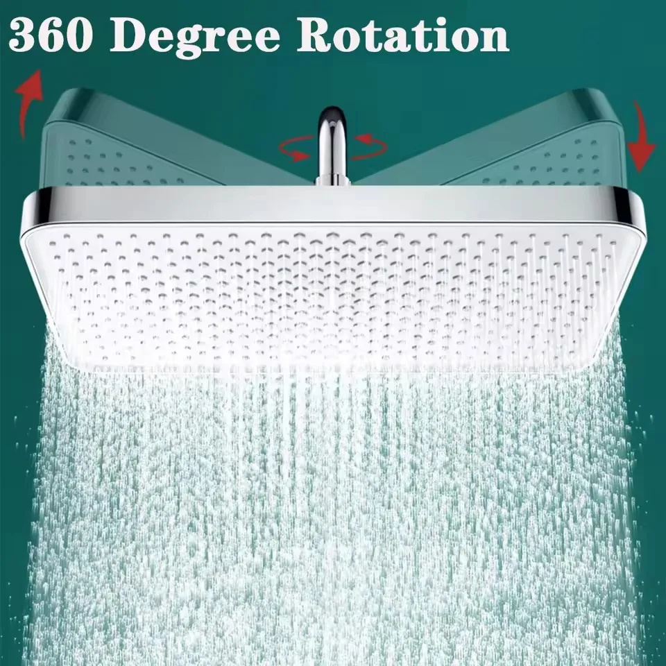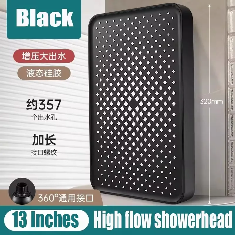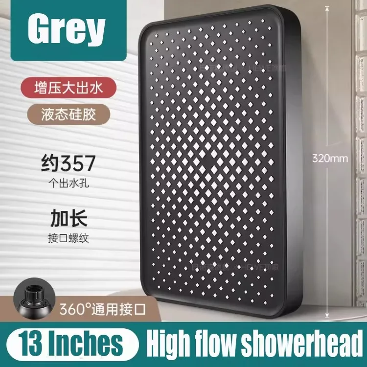 Experience a luxurious rainfall shower with this 13-inch ceiling-mounted shower head, crafted from durable ABS plastic with a sleek chrome finish. Its large, round panel design provides high water flow and an immersive experience, ideal for a modern bathroom upgrade. The fixture supports ceiling installation and includes a semi-optional support bracket. Designed for high-pressure water delivery, this fixed shower head features evenly spaced nozzles in a grid pattern for optimal rainfall effect. Available in black, grey, and silver, it combines contemporary aesthetics with practical performance, transforming your daily routine into a relaxing, spa-like experience with style and efficiency.