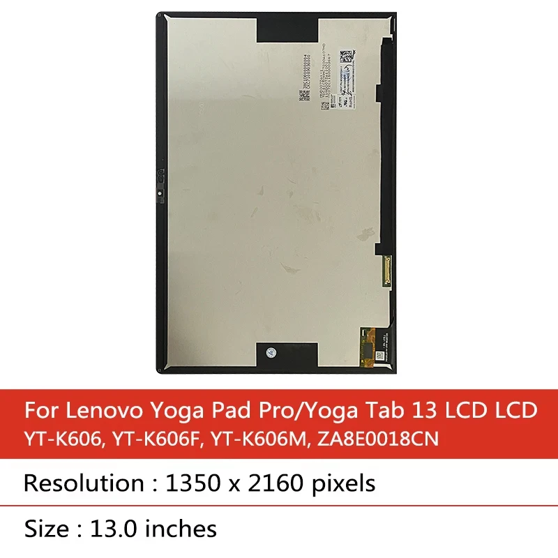 Upgrade your Lenovo Yoga Tab 13 with this high-quality 13.0-inch IPS LCD display and touch screen digitizer assembly. Expertly tested to ensure perfect performance, this replacement screen is designed to resolve issues such as damage, cracks, or unresponsive touch. Equipped with a pre-activated plastic film for safe packaging, it offers a seamless installation experience. Compatible with models YT-K606F, YT-K606M, and YT-K606, it provides crisp resolution of 1350 x 2160 pixels for stunning visuals. Trust in our large inventory, rigorous testing, and dedicated after-sales support to make your repair smooth. Imagine enjoying your tablet with a bright, responsive display once again – you’ve taken the first step toward restoring your device’s full potential.