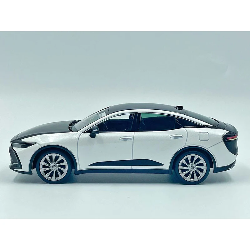 Imagine adding a touch of modern sophistication to your collection with this beautifully crafted diecast alloy car model. Measuring approximately 18cm, it presents a sleek, contemporary sedan design with a glossy white finish contrasted by black accents on the roof, hood, and side mirrors. Its streamlined profile features smooth, flowing curves, sculpted door lines, and a gentle beltline that exudes aerodynamic elegance. The finely detailed front grille and elongated, sharp headlights give it an aggressive yet refined look, perfect for showcasing. The realistic alloy wheels with multi-spoke rims and low-profile tires enhance its sporty appearance. This durable, limited edition model is an ideal ornament for office desks, study corners, bars, or as a distinguished gift for enthusiasts. Its minimalist yet modern style guarantees it will stand out in any display setting.