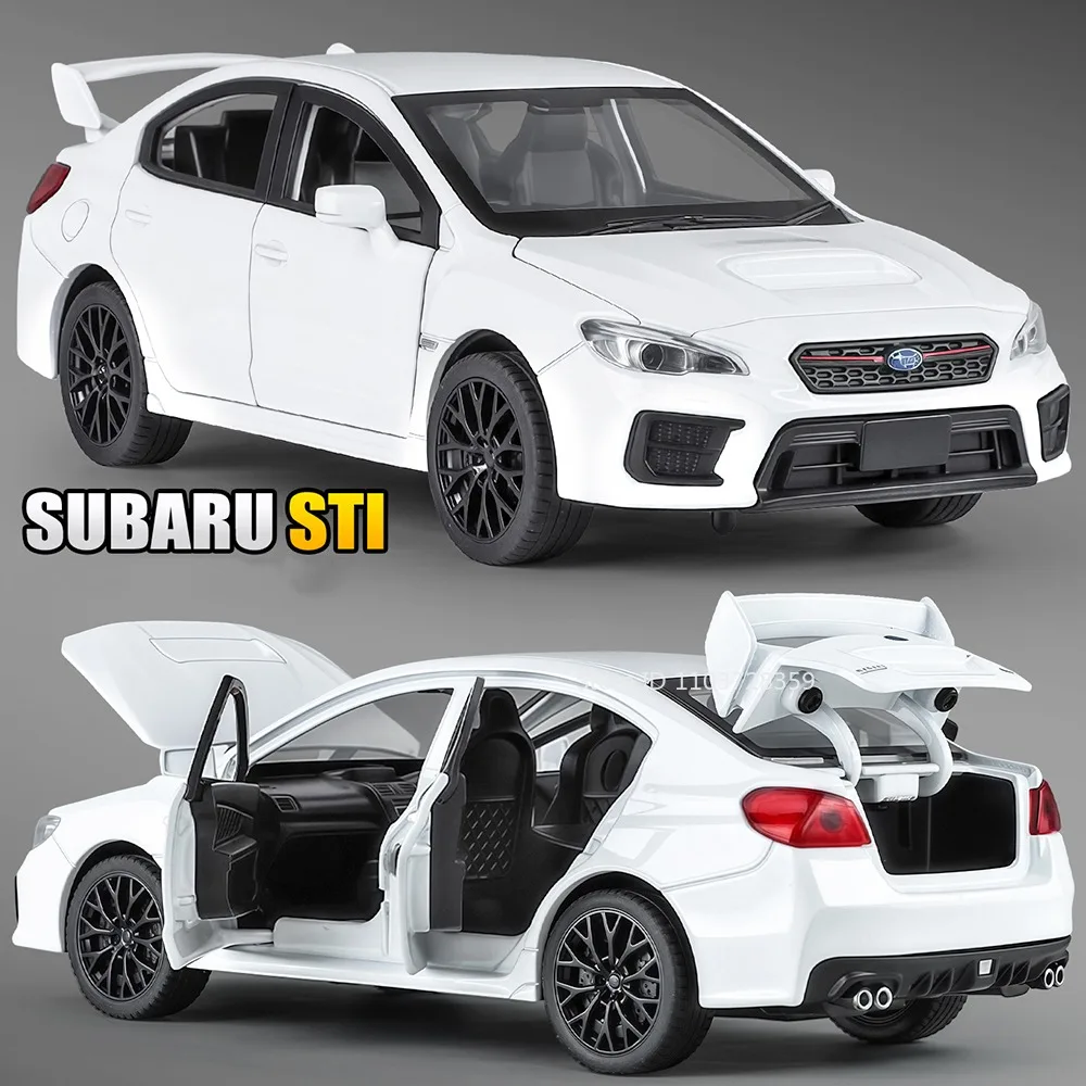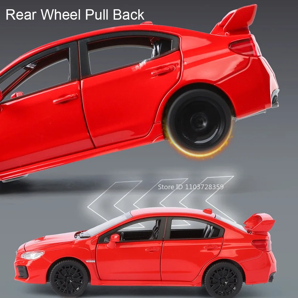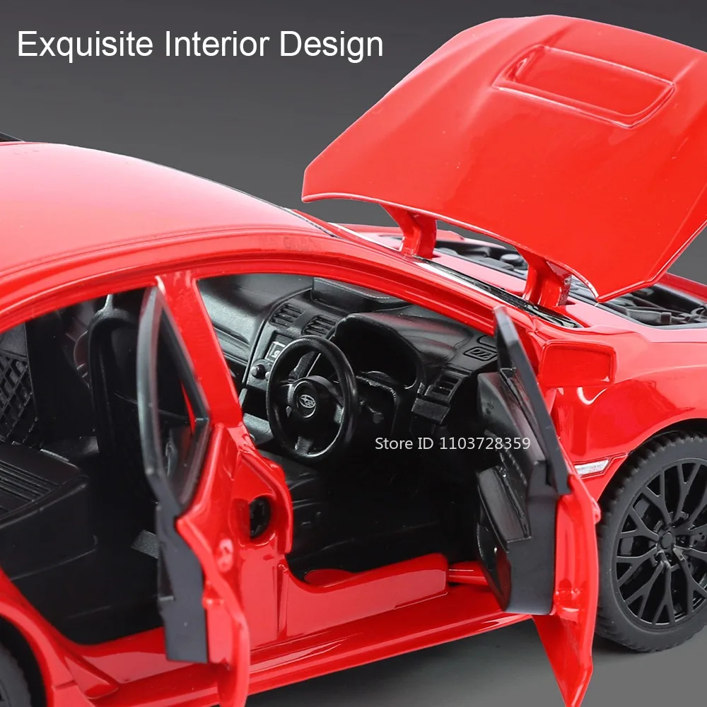This high simulation 1:30 scale car model captures the sleek design of a Subaru WRX STI and an AE86, available in vibrant Blue, Red, and White colors. Crafted with a durable alloy body, plastic chassis, and textured rubber tires, it measures approximately 15.5 x 6 x 5 cm for the WRX STI and 15 x 6.5 x 5 cm for the AE86. Features include opening doors, engine hood, and trunk, as well as sound and light functions, a pull-back mechanism, and shock absorption in the rear wheels for smooth movement. Powered by batteries, this realistic model is an ideal gift for enthusiasts and older children aged 14 and above.