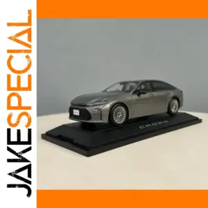Experience the sleek elegance of this 1:30 scale die-cast model of the Toyota Crown, crafted from alloy, plastic, and rubber with a fully enclosed design. The model features a metallic grey finish with a refined aerodynamic silhouette, narrow elongated headlamps, a bold black grille with horizontal slats, and intricate multi-spoke alloy-style wheels. Its smooth contours and subtle door lines highlight high craftsmanship and attention to detail, perfect for collectors or display enthusiasts. Please note minor paint surface defects and packaging damage. Suitable for ages 14 and above, this static model is ideal for collection, gifting, or decorative appreciation, offering a realistic and stylish representation of a modern luxury vehicle.