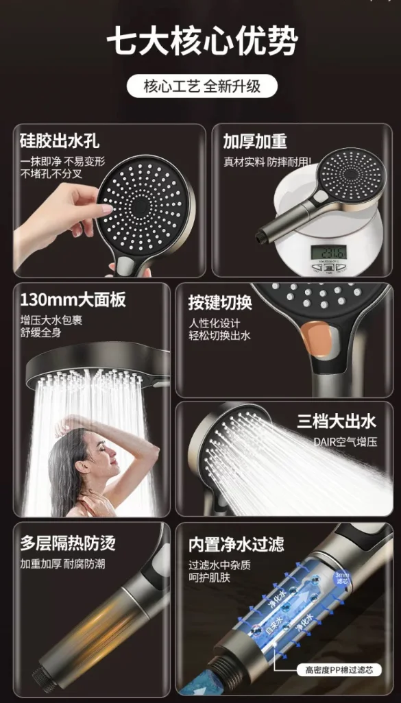 - Compatible with handheld installation, with three filters included for water purification, ensuring clean water flow and extending the product’s longevity.