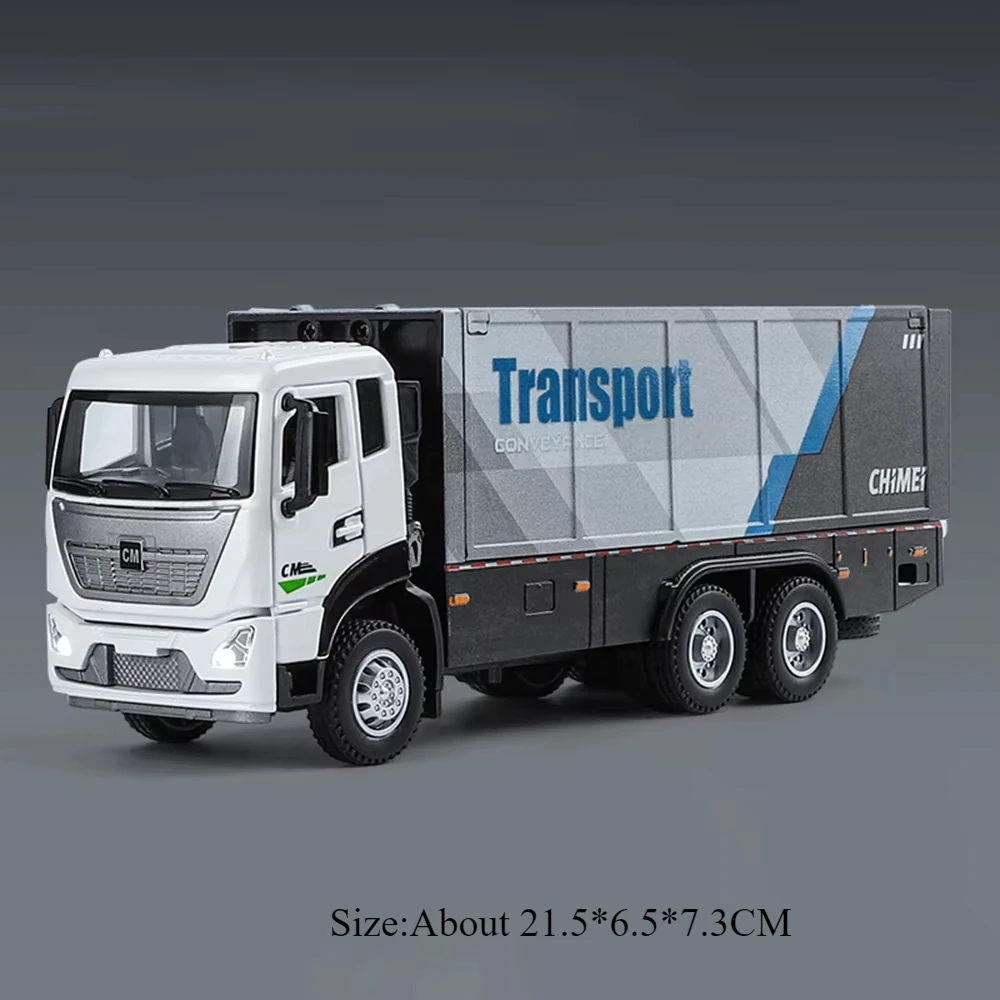 Experience the realism of this 1:32 scale alloy container transport truck, meticulously designed with a durable metal body, plastic chassis, and rubber tires. Measuring approximately 21.5 x 6.5 x 7.8 cm for model C521 and 21.5 x 6.5 x 7.3 cm for model C517, it features functional doors that open, a pull-back mechanism, and integrated sound and light effects to enhance play and display. Crafted for collectors and enthusiasts aged 14 and above, this high-simulation diecast model combines excellent craftsmanship with vibrant details, including a textured container with reflective markings and colorful graphics. Batteries are not included; those ready to add detail and fun will find this an ideal choice.