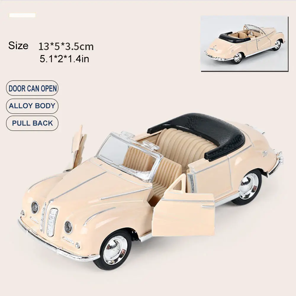 Imagine adding a touch of timeless elegance to your collection with this stunning 1:32 alloy diecast cabriolet. Perfect for display or gifting, this miniature vehicle brings the charm of vintage cars right into your hands. Crafted with careful attention to detail, it’s a beautiful replica that captures the essence of classic automotive design. Whether you’re a collector or looking for a unique gift that stands out, this model will surely become a treasured piece. Its pull-back action allows you to enjoy playful movement without batteries or lights, making it an easy, no-fuss addition. Experience the joy of owning this authentic, high-quality miniature that celebrates automotive history.