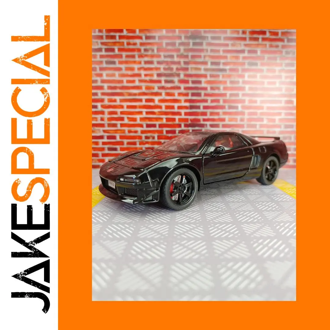 Imagine holding a sleek, precision-crafted replica of a high-performance NSX sports car, perfectly capturing its modern, aerodynamic design. The model features a smooth black finish that exudes sophistication and sportiness, complemented by sculpted lines and a low, aggressive front stance. Its elongated hood with subtle ventilation details, narrow seamlessly integrated headlights, and a curved windshield flowing into streamlined side windows make it a true collector’s piece. The black multi-spoke wheels, with visible red brake calipers, add a vibrant, realistic touch. The rear spoiler and elongated taillights complete the bold, sporty profile. This model is designed to impress and bring to life the thrill of driving a supercar right in your display collection.