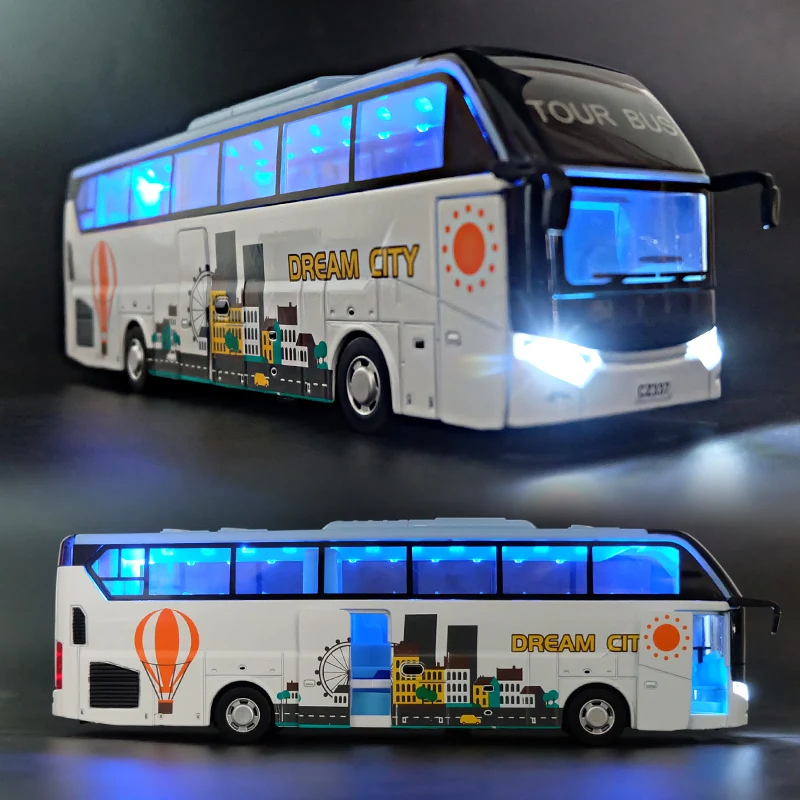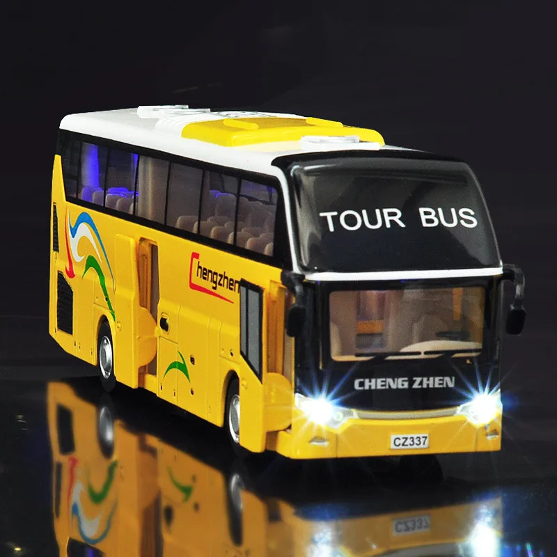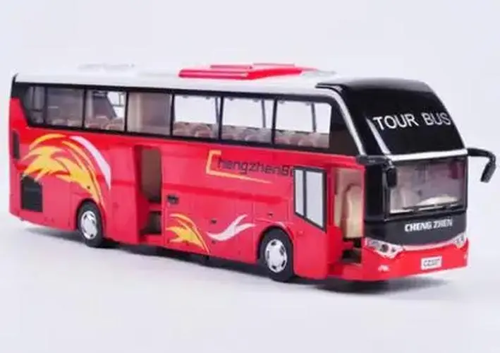 Experience the detailed craftsmanship of this 1:32 scale alloy pull-back toy bus, measuring 24cm x 5cm x 7.5cm, crafted from zinc alloy, plastic, and rubber. This diecast collectible features open doors, flashing lights, and musical functions, all designed to evoke realism and playfulness. No batteries are included; it requires AG 13 batteries for added features. Available in six vibrant colors, it’s perfect for adult collectors and display enthusiasts, offering a sleek, modern aesthetic with realistic details like side mirrors and headlights. Enhance your collection with this high-quality, dynamic bus model that combines craftsmanship with interactive features.