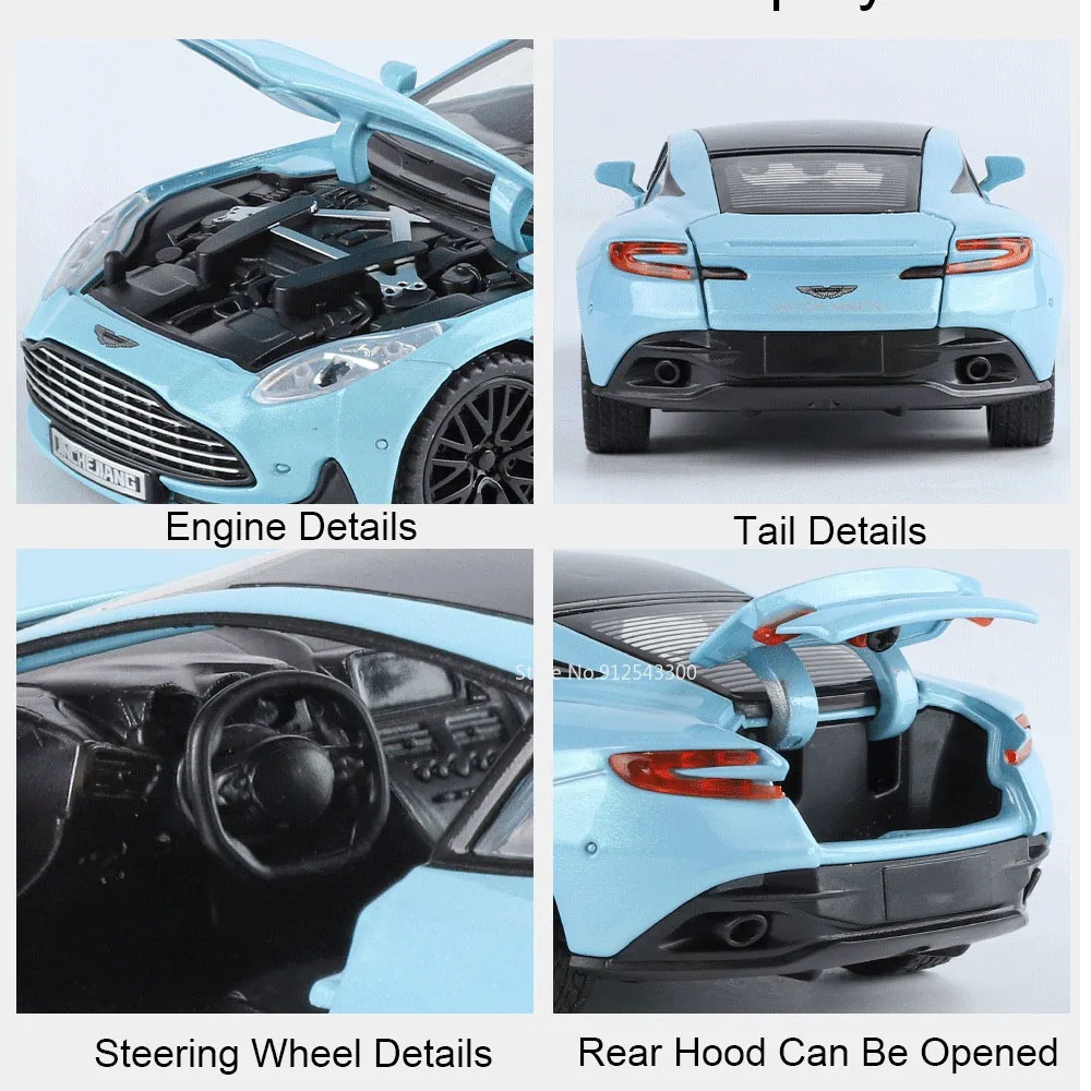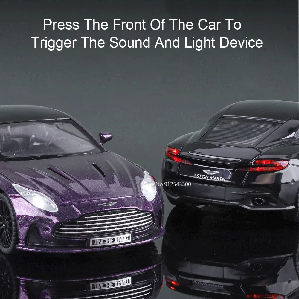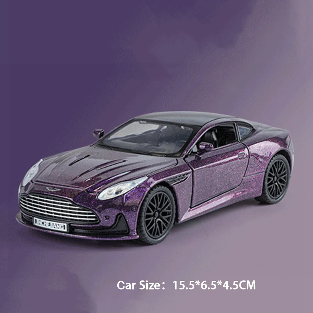 Experience the thrill of high-performance with this 1:32 scale die-cast model car, available in stylish colors like purple, blue, yellow, grey, and black. Crafted with a durable metal body, plastic chassis, and textured rubber tires, it measures approximately 15.5 x 6.5 x 4.5 cm for the DB12 and 15 x 6.5 x 3.7 cm for the Vulcan. Features include functional sound and light effects, a pull-back mechanism, and doors that open to reveal a detailed interior. Designed for collectors aged 14 and up, this high-simulation vehicle combines craftsmanship with realistic details for an impressive display piece or a dynamic addition to your collection.