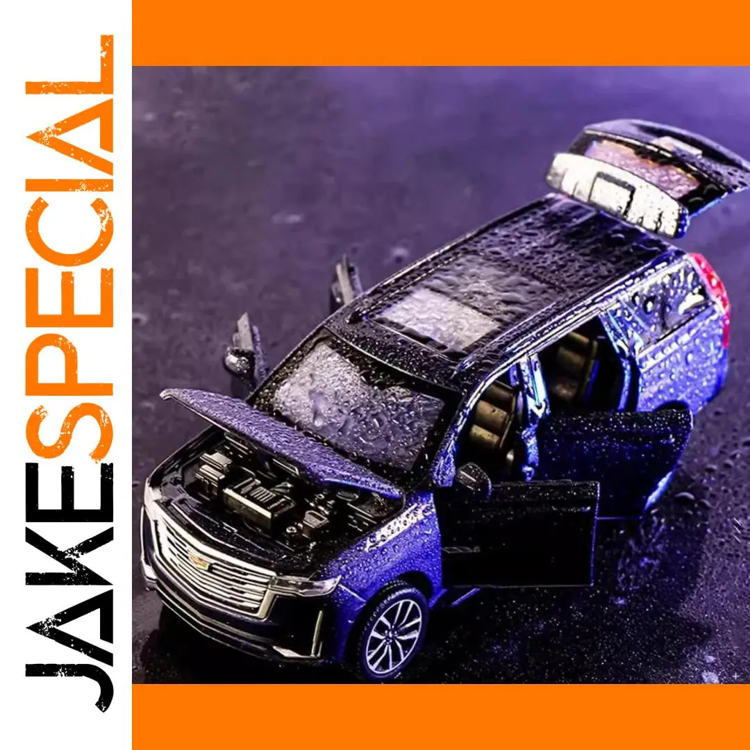 Experience the realism and elegance of this meticulously crafted 1:32 scale diecast model of a Cadillac Escalade SUV. Featuring a sleek metallic black finish with a glossy surface, this collectible captures the vehicle’s sophisticated design. The model showcases detailed accents such as a bold grille with horizontal slats, carefully rendered headlights with clear lenses, and realistically crafted side mirrors. Open doors reveal an intricately detailed interior, while the lifted rear hatch exposes a simulated cargo space. The water droplets on its surface emphasize its high-quality glossy finish, adding a fresh, dewy effect. Perfect as a desktop ornament or a children’s toy, this durable model is designed for enthusiasts and collectors seeking to bring a touch of luxury and realism to their space.