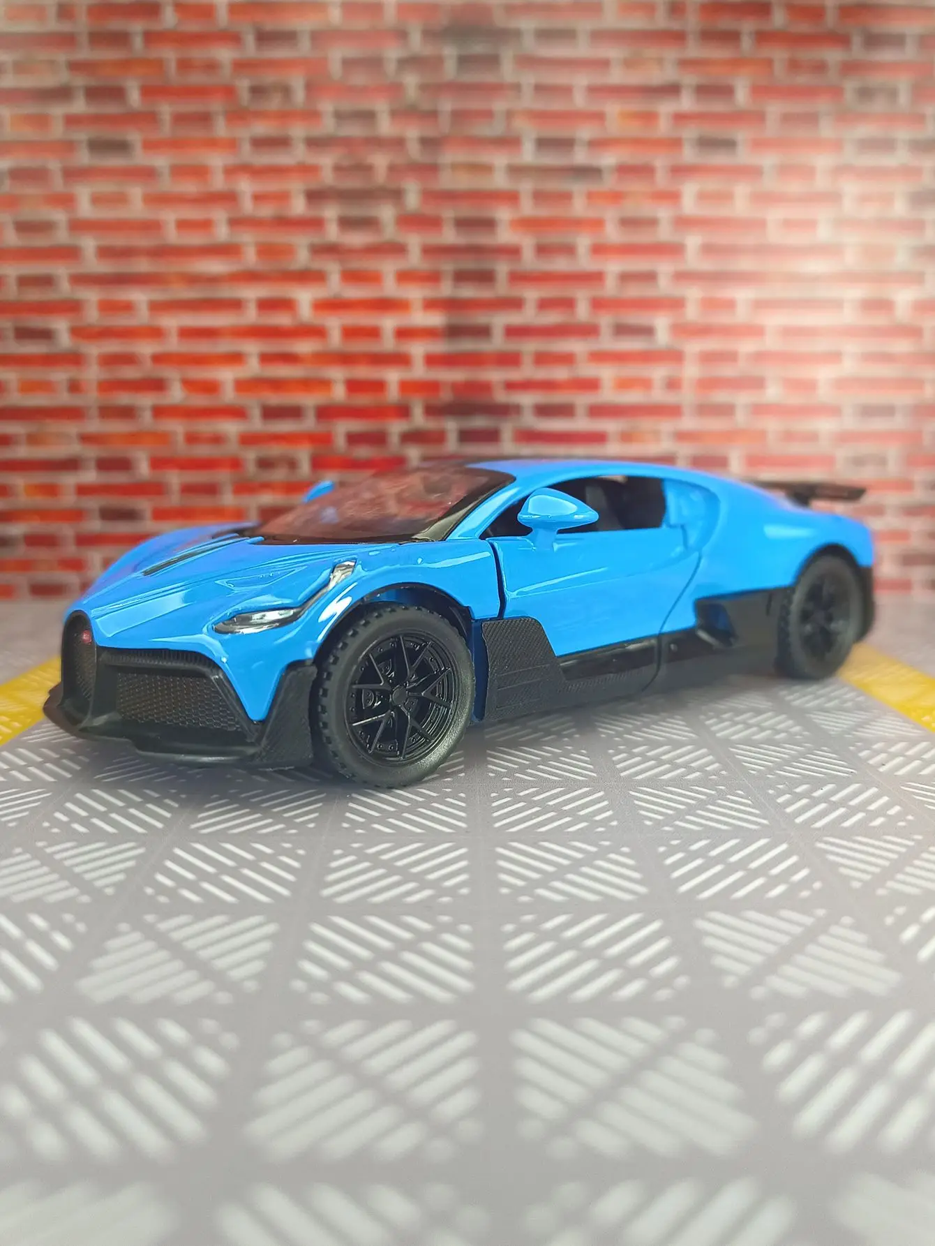 Experience the thrill of owning a meticulously crafted scale model of a high-performance sports car. This 1:32 diecast alloy car captures the sleek, aerodynamic design of a modern supercar, with a smooth metallic silver finish that evokes luxury and speed. Black accents on the wheels and body details add contrast, while the intricate spoke design enhances realism. The glossy surface highlights its polished craftsmanship. Functional doors open effortlessly, revealing a detailed interior with seats, steering wheel, and dashboard. The model’s low roofline and rear wing emphasize its sporty silhouette. Perfect for collectors or enthusiasts, this model brings dynamic style and expert workmanship into your collection or display.