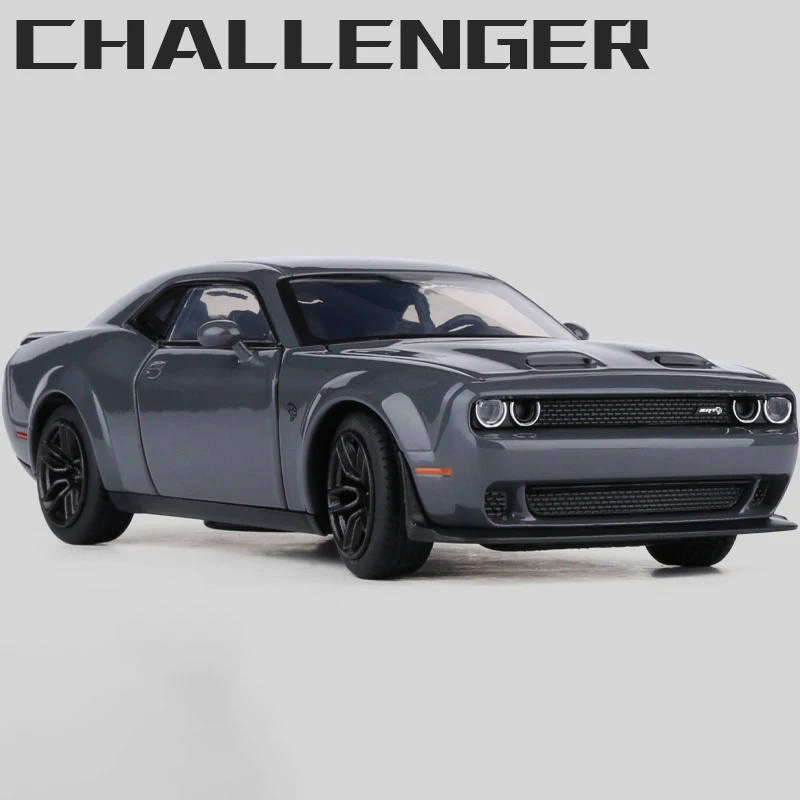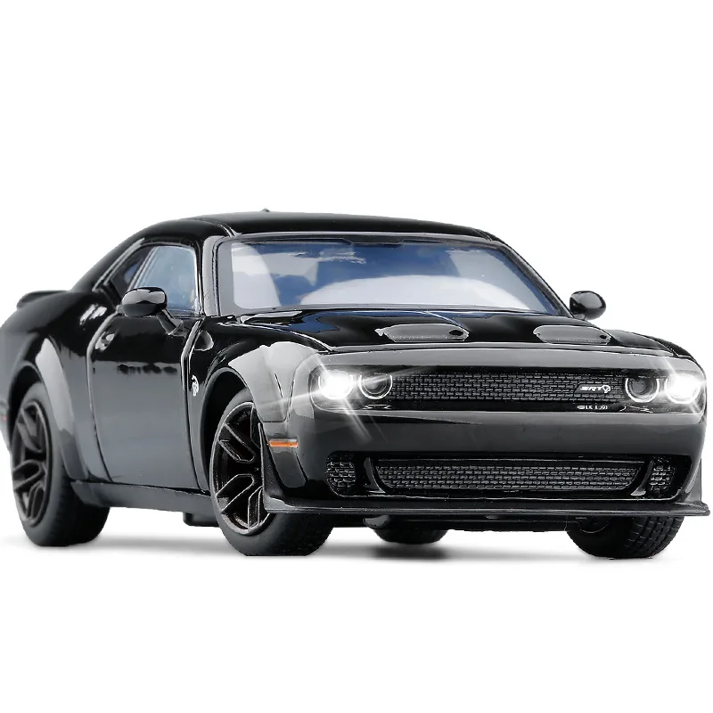 Experience the thrill of owning a stunning replica of the Dodge Challenger SRT Demon with this detailed 1:32 scale diecast muscle car model. Crafted from high-quality alloy and plastic, this model showcases a sleek, glossy black, gray, or red finish that accentuates its muscular and aerodynamic design. The realistic features include a wide mesh grille, dual round headlights, subtle air vents on the hood, a fastback roofline, detailed door handles, and sporty side mirrors. Equipped with sound and light functions powered by a lithium battery, it offers an interactive experience. Perfect for collection enthusiasts or young car lovers, this model brings authentic aesthetics and meticulous detailing right into your collection.