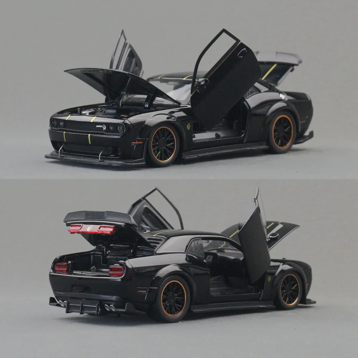 Bring a touch of high-performance automotive excellence into your collection with this detailed, realistic Dodge Challenger SRT Hellcat model. Its authentic design, dynamic features, and exceptional craftsmanship make it a captivating piece that you'll be proud to display. Perfect for enthusiasts who appreciate precision and style, this model is ready to add excitement to your space. Don't miss your chance to own this impressive collectible—add it to your collection now and enjoy the thrill of owning a miniature masterpiece of the legendary Dodge Challenger SRT Hellcat.
