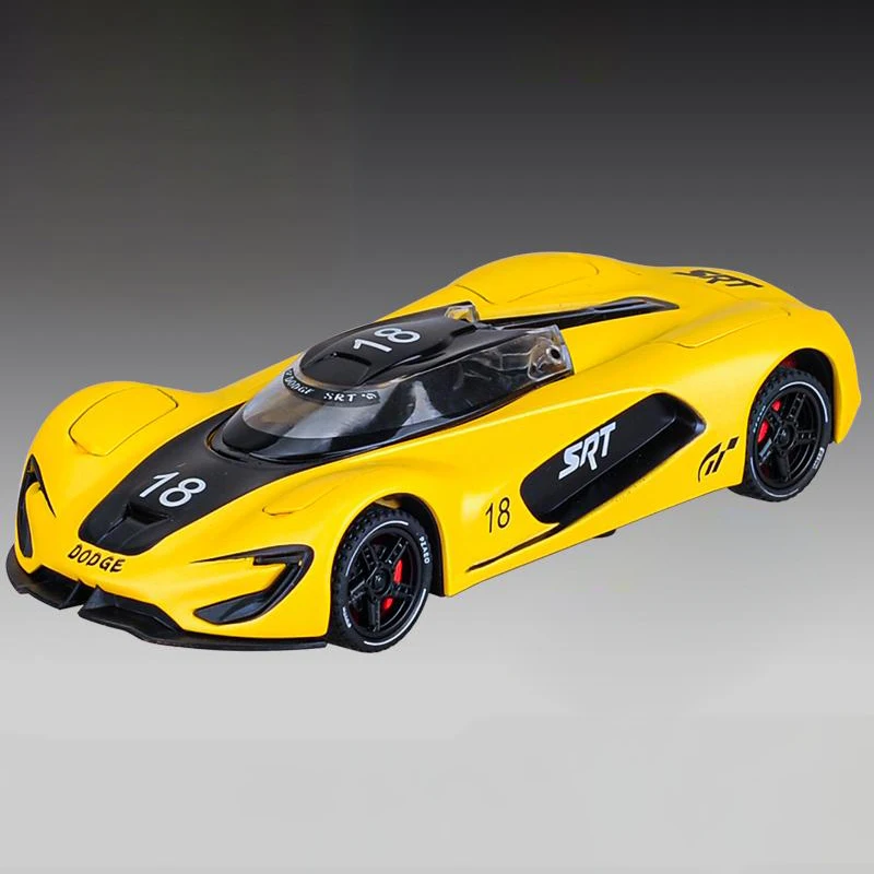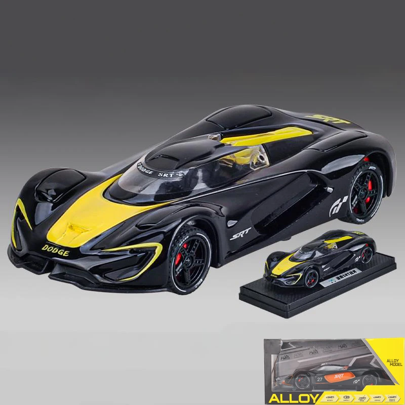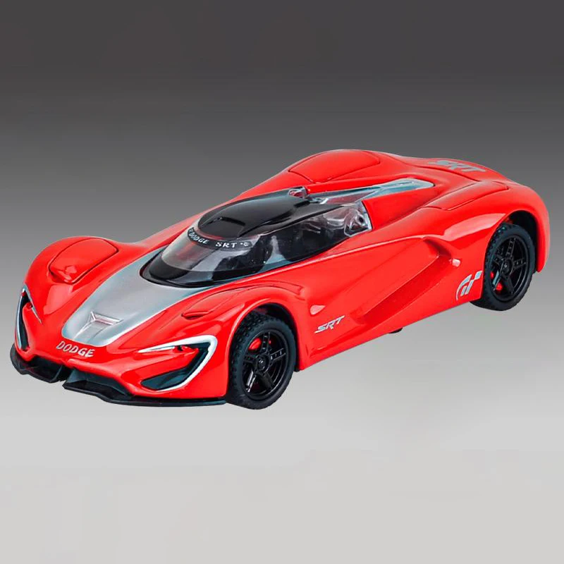 Imagine adding this stunning 1:32 scale Dodge Tomahawk SRT V10 Concept sports car to your collection. Crafted with diecast metal, this model captures the sleek lines and powerful details of the original. Its lightweight yet durable build makes it a perfect display piece or a unique decorative item. Whether you're a passionate hobbyist or a dedicated collector, this toy car offers a realistic look and impeccable craftsmanship. Picture yourself showcasing this masterpiece on your shelf or gifting it during special occasions. Its true-to-life design sparks excitement and admiration, making every moment with it special. Own a piece of automotive innovation with this exceptional collector's item today.