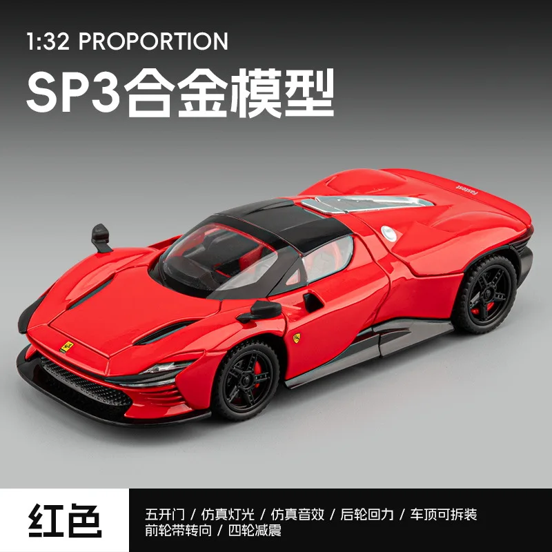 Bring this stunning 1:32 scale Daytona SP3 supercar into your collection or play area now. Its precise detailing, interactive features, and vibrant color options make it a standout piece for any enthusiast. Whether you’re reliving racing passions or displaying a tribute to Ferrari’s excellence, this model will impress you and your guests. Don't miss the chance to own this high-quality, meticulously crafted miniature that captures the essence of the iconic supercar. Add it to your collection today and enjoy a mixture of craftsmanship and excitement every time you look at it.