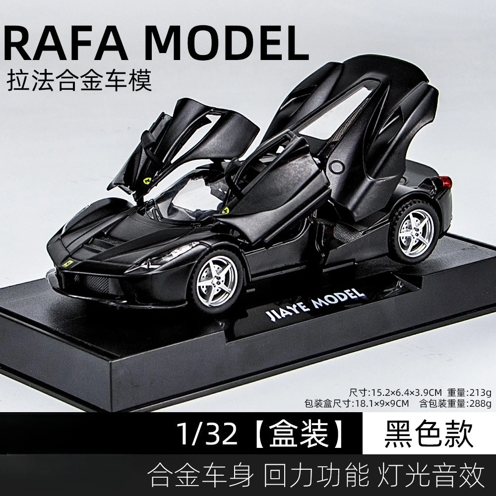 Experience the thrill of Ferrari’s iconic LaFerrari with this highly detailed 1:32 scale diecast alloy model. Featuring a vibrant, glossy red body accented by black roof and side mirrors, this miniature sports car captures authentic aerodynamic details, including a low front splitter, narrow headlights, and smooth, flowing curves. Equipped with silver alloy wheels and textured black tires, it offers a realistic, high-quality display piece. Powered by button batteries and suitable for individuals aged 14 and above, this model is available in multiple color and packaging options, perfect for collectors and enthusiasts who appreciate craftsmanship and precision in every detail.