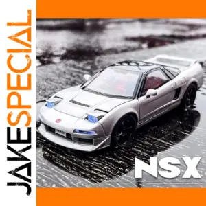 This 1:32 scale Honda NSX diecast model measures approximately 14.8 x 4.4 x 6 cm and features a durable alloy metal body, plastic chassis, and rubber tires with a sporty tread pattern. It includes five openable doors, detailed interior, and illuminated headlights with sound functions operated by included batteries. The model boasts a sleek, aerodynamic design finished in vibrant red, black, yellow, or metallic silver, complemented by a rear wing spoiler for a racing-inspired aesthetic. Its pull-back propulsion mechanism adds to its dynamic appeal, making it an impressive collectible or display piece for enthusiasts aged 14 and above.