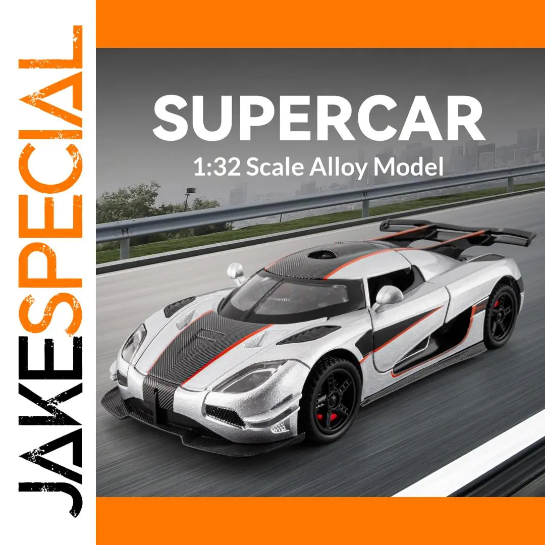 Experience the thrill of speed with this detailed 1:32 scale model of the iconic Koenigsegg One:1 sports car. Crafted from durable alloy metal, it boasts an ultra-realistic design that captures every aerodynamic contour, textured surface, and stylish detail of the original supercar. The sleek silver body with contrasting black accents along the central line, rear wing spoiler, and side air intakes highlights its sporty aesthetic. The clear, carefully molded windows give an inside peek at the interior details, while the multi-spoke rims with red brake calipers underscore high-performance engineering. Perfect as a collector’s item or dynamic decoration, this model embodies precision craftsmanship and authentic style for car enthusiasts and collectors alike.