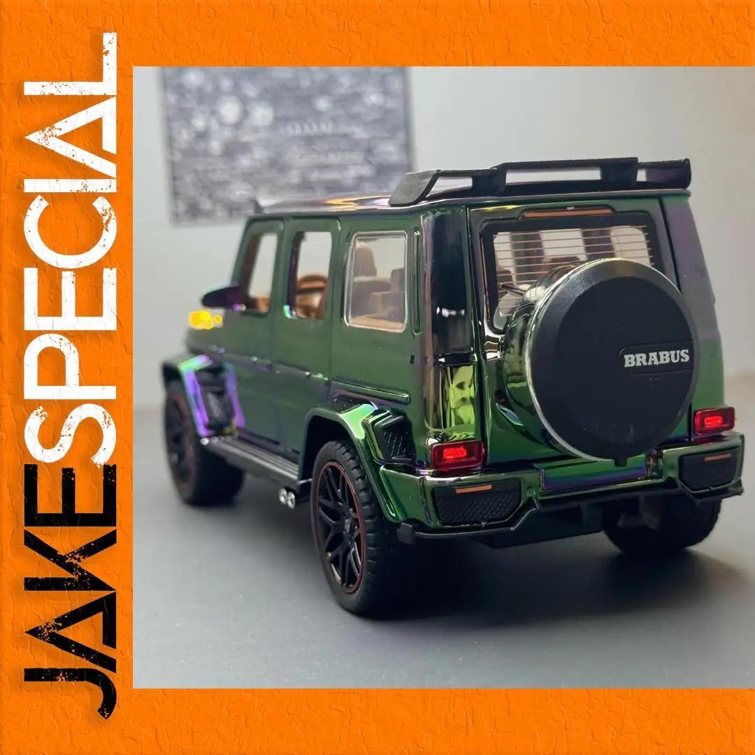 Imagine adding a striking piece to your collection with this exquisitely crafted 1:32 scale diecast model of a Mercedes-Benz G800. Made from high-quality metal with an electroplated alloy finish, it boasts a glossy, reflective surface that exudes sophistication. The model’s vibrant metallic green color catches the eye immediately, enhancing its modern appeal. The detailed rear showcases a realistic spare tire covered with a black “BRABUS” badge, while the small red tail lights add a touch of authenticity. The rugged black roof rack complements the adventurous aesthetic, perfect for display or as a unique decorative piece. It’s a premium collectible, perfect for any enthusiast seeking craftsmanship and style in one package.