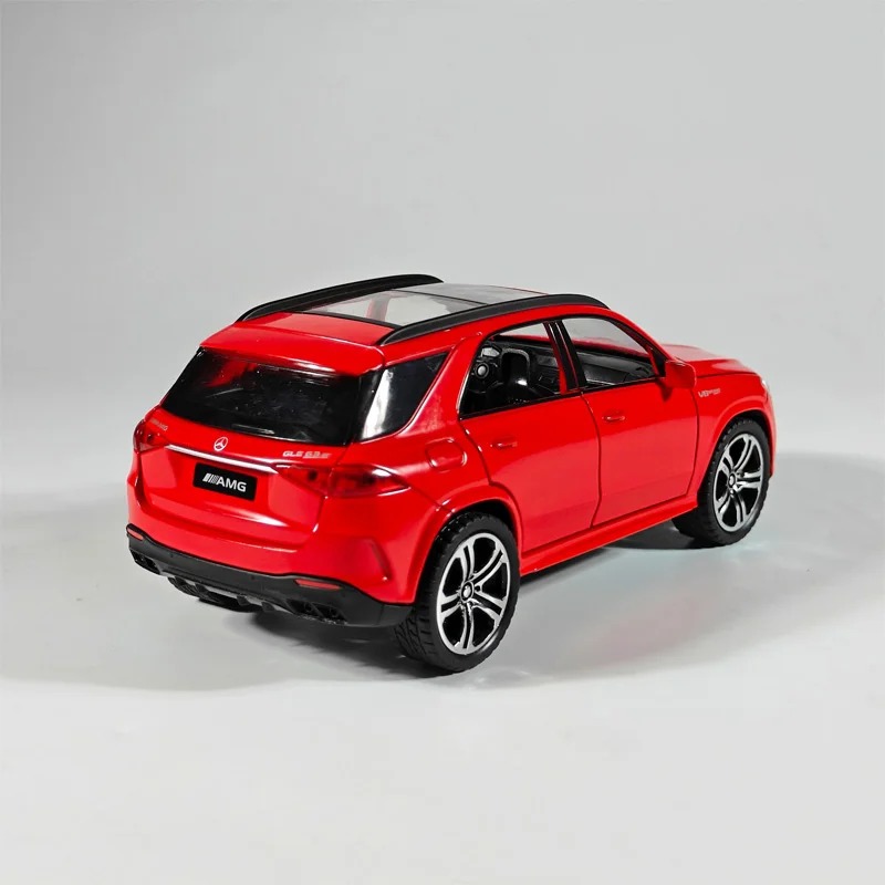 - The vibrant red exterior boasts a glossy, mirror-like finish with sculpted lines, curves, and realistic details, reminiscent of the actual GLE 63S's sophisticated design.