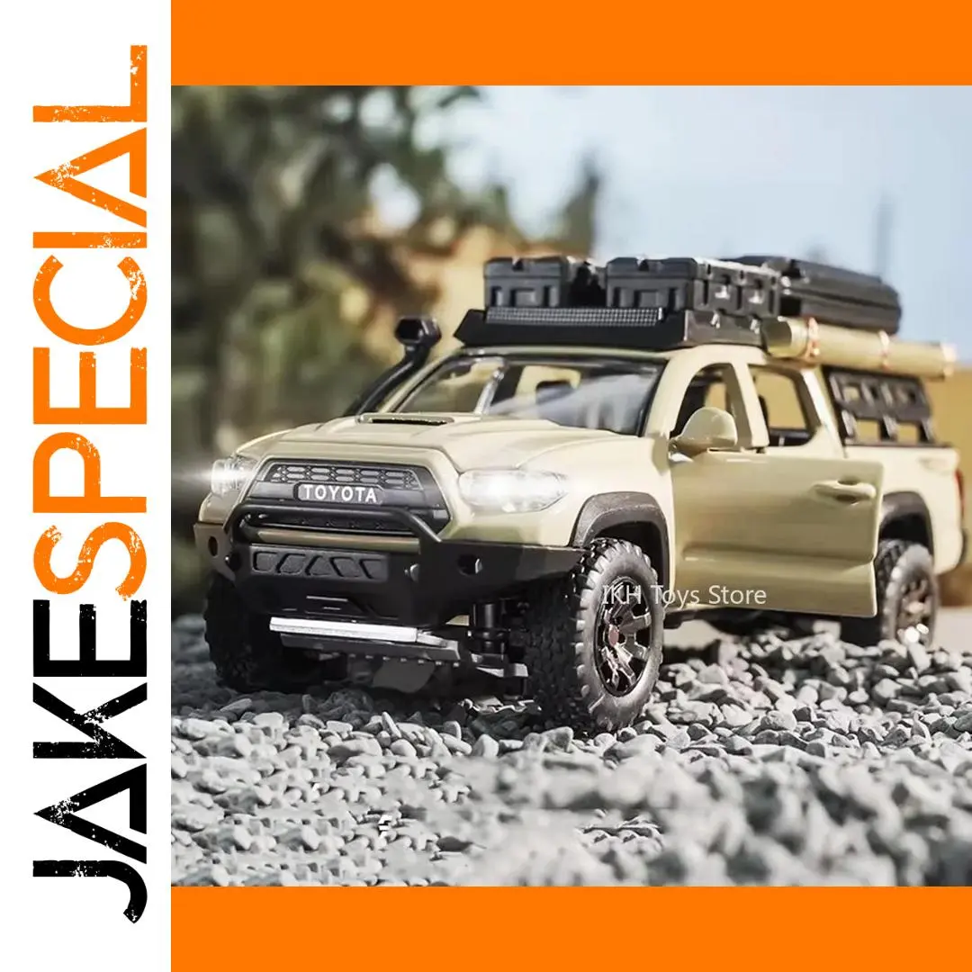 - The model measures approximately 18x7x8 cm for the Tacoma and 15.3×6.5×6 cm for the Prado, crafted from metallic alloy and high-quality plastic, ensuring durability and realism.