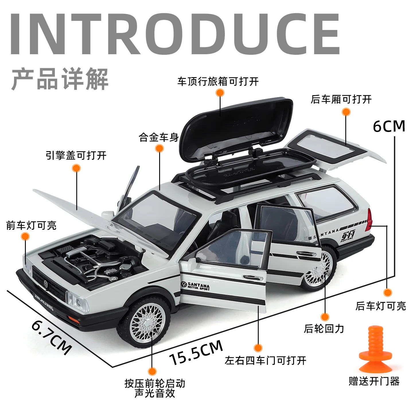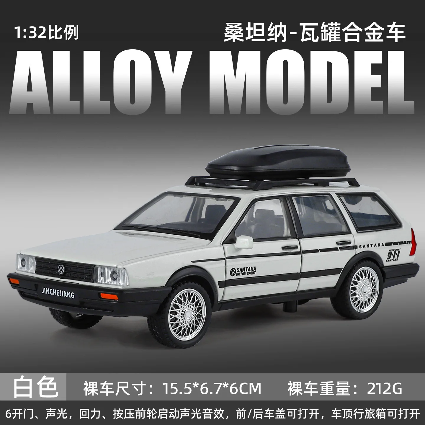 Enhance your display with this meticulously crafted Santana scale model, perfect for passionate collectors who appreciate retro automotive design and detailed craftsmanship. Its combination of vintage style with modern features like sound and lights makes it a standout piece in any collection. Whether you choose a box or no-box variant, this model promises to impress with its realism and nostalgic appeal. Don't miss the opportunity to own this exceptional diecast toy—it's an investment in both quality and style that you'll cherish.