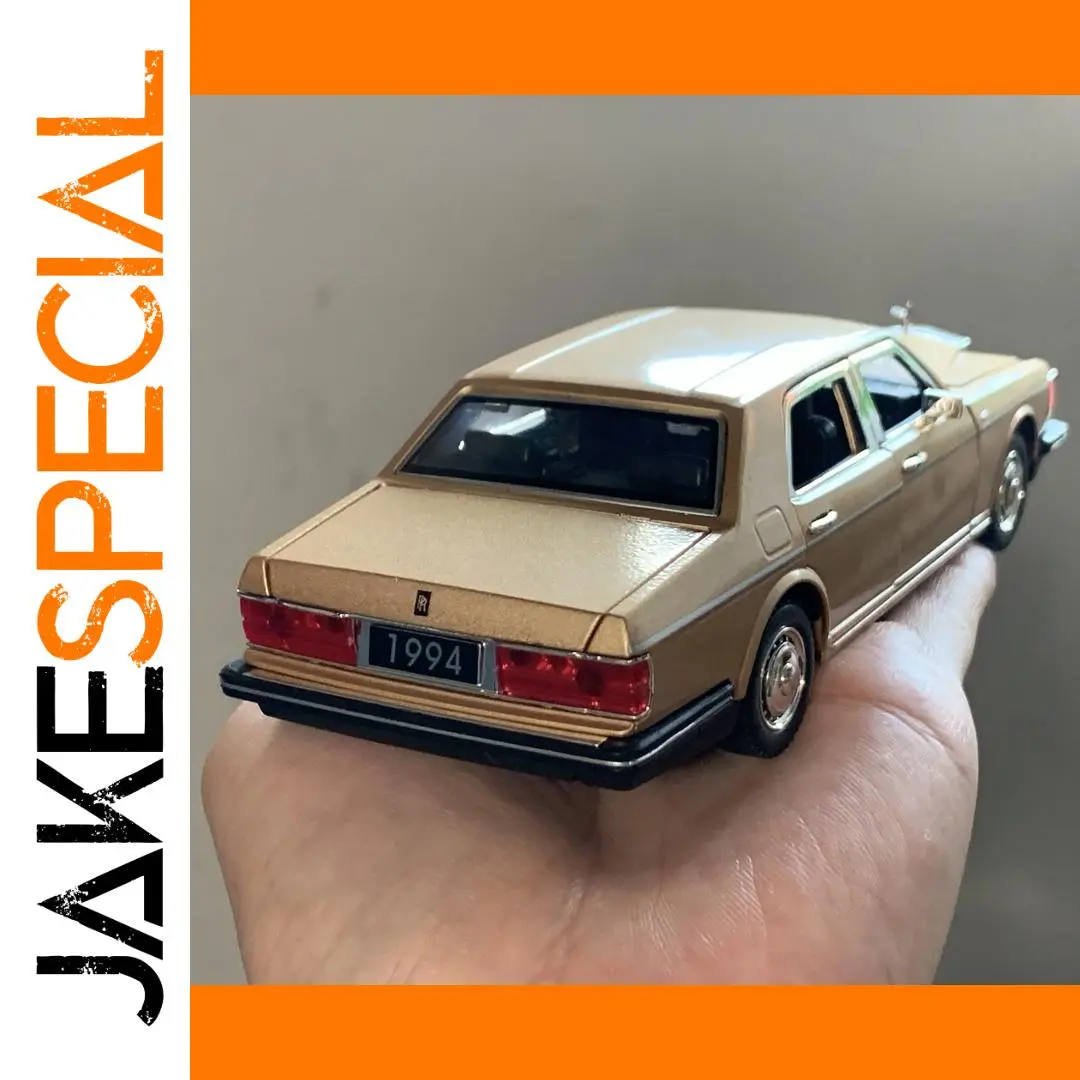 Experience the elegance and craftsmanship of this meticulously crafted diecast model of the 1994 Rolls Royce Silver Spur Limousine, scaled at 1:32. Handheld to showcase its detailed alloy body, it exudes luxury through its smooth metallic beige finish and subtle sheen. Chrome accents highlight exquisite details such as door handles, side mirrors, and window frames, capturing the iconic design of the original vehicle. The rear features vibrant red taillights with clear reverse sections, complemented by a finely detailed black bumper. Transparent windows reveal a glimpse of the interior’s craftsmanship, while realistic metallic hubcaps and textured tires enhance authenticity. This model is perfect for display, showcasing high-end collector quality craftsmanship, making it an impressive addition to any collection.