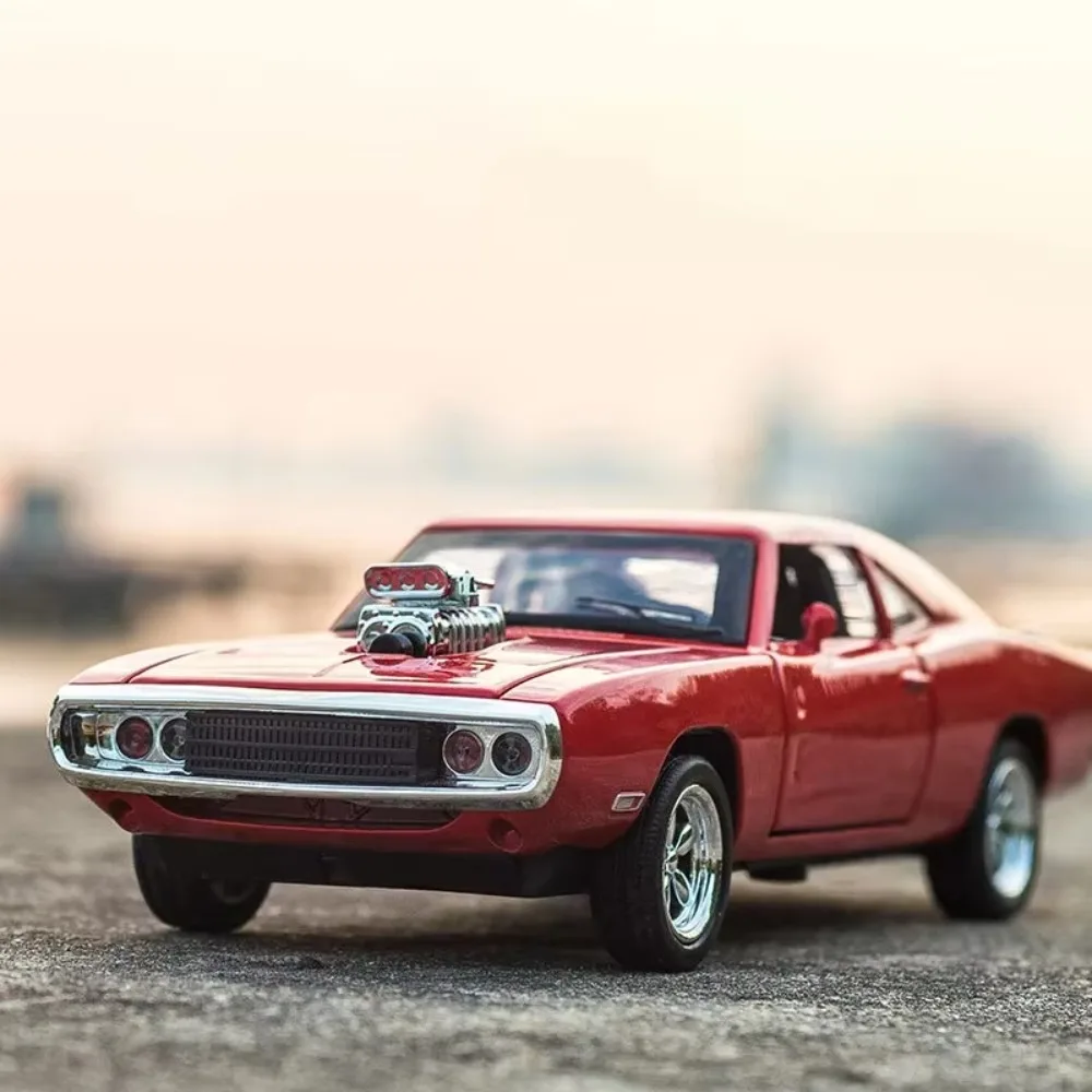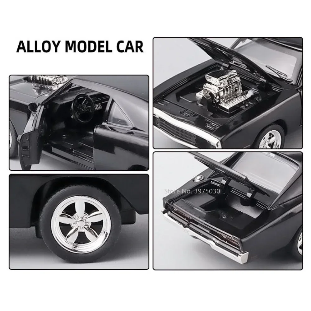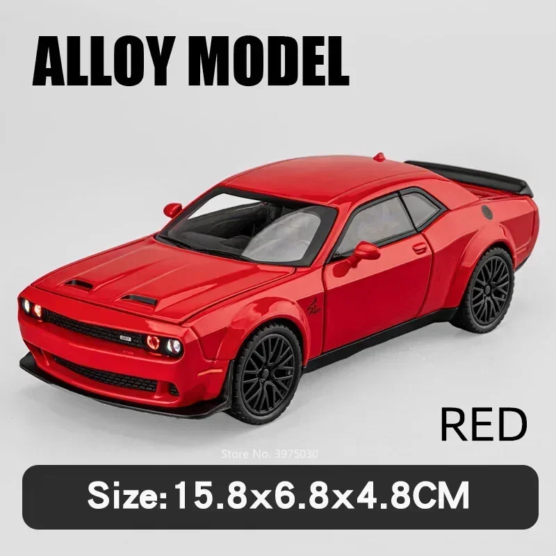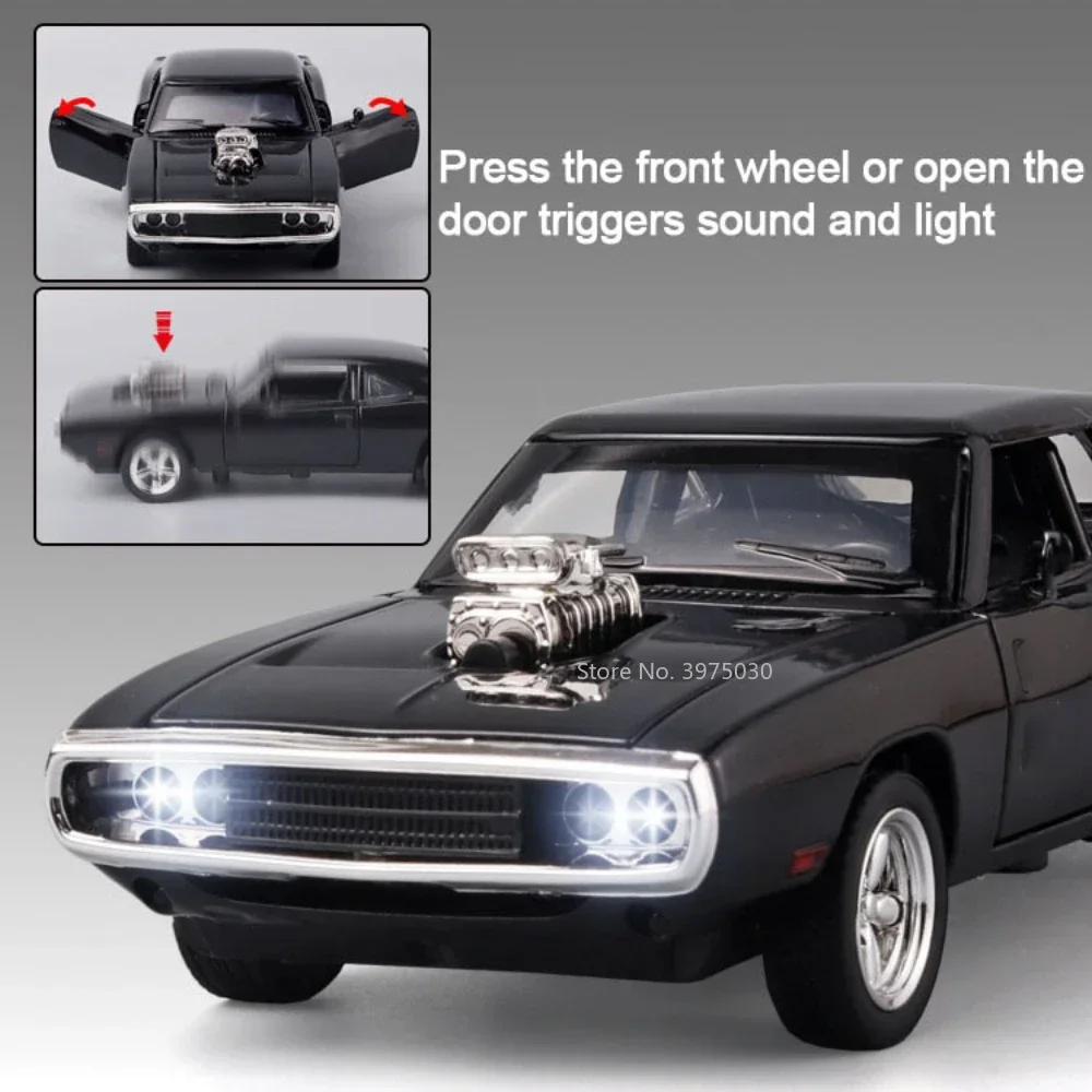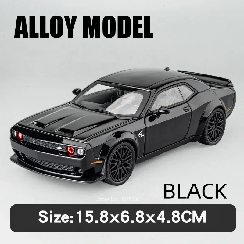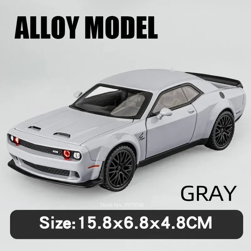 Experience the thrill of classic muscle cars with this highly detailed 1:32 scale alloy model, available in vibrant colors including white, red, gray, blue, and black. Crafted with a zinc metal body, plastic chassis, and rubber tires featuring detailed tread patterns, this model measures approximately 16.7 × 6 × 4.5 cm for the 1970 Charger and 15.8 × 6.8 × 4.8 cm for the Hellcat. It features four functional doors that can be opened, realistic sound and light effects, and a pull-back mechanism for dynamic movement. Durable and meticulously designed, it’s powered by included batteries and is ideal for collectors age 14 and above.