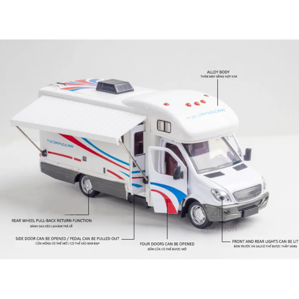 Imagine showcasing this striking campervan model in your collection or using it as a conversation starter in your display. Its superb craftsmanship and realistic details make it a perfect addition for enthusiasts and collectors alike. Whether as a gift or personal keepsake, this durable alloy model offers both visual appeal and interactive features. Don’t miss your chance to own this beautifully crafted miniature that captures the essence of modern RVs, blending style, detail, and functionality seamlessly. Upgrade your collection today!