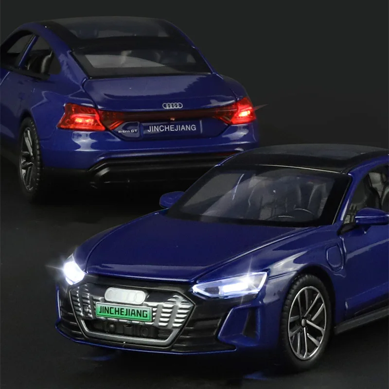 Experience the thrill of owning this highly detailed 1:32 scale diecast alloy and plastic model of the cutting-edge Audi RS e-tron GT sports car. Perfect for collectors and enthusiasts, this model captures the sleek design and aggressive stance of the original vehicle with precision. Its glossy finish in options of black, blue, red, or the striking white makes it an eye-catching display piece. The addition of sound and light effects further enhances realism, allowing you to imagine the power and sophistication of this electric sports car. Whether displayed on your shelf or used for creative play, this model brings a premium automotive experience right into your space, evoking a sense of modern innovation and style.