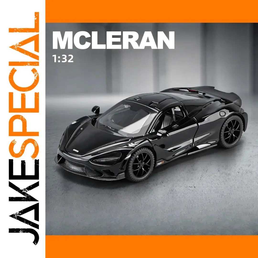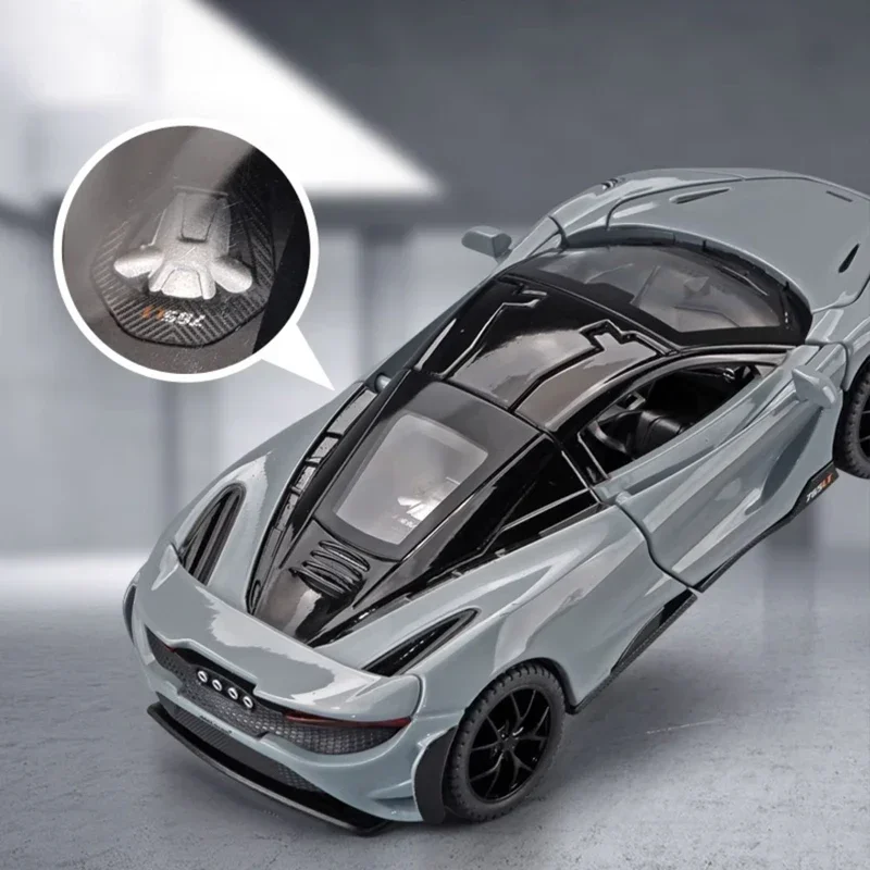 Experience the thrill of high-performance with this 1:32 scale diecast model of the McLaren 765LT. Crafted from zinc and plastic, this detailed collectible features sleek black, orange, or gray finishes and includes sound and light functions, along with a pullback mechanism for dynamic play. Its aerodynamic design with smooth curves, textured tires, and realistic panel lines perfectly captures the luxury and racing spirit of the original vehicle. Suitable for ages 14 and up, this model makes an ideal display piece or gift for automotive enthusiasts who appreciate meticulous craftsmanship and authentic detailing.