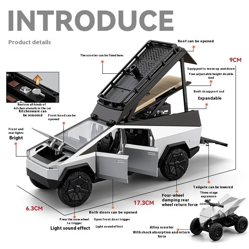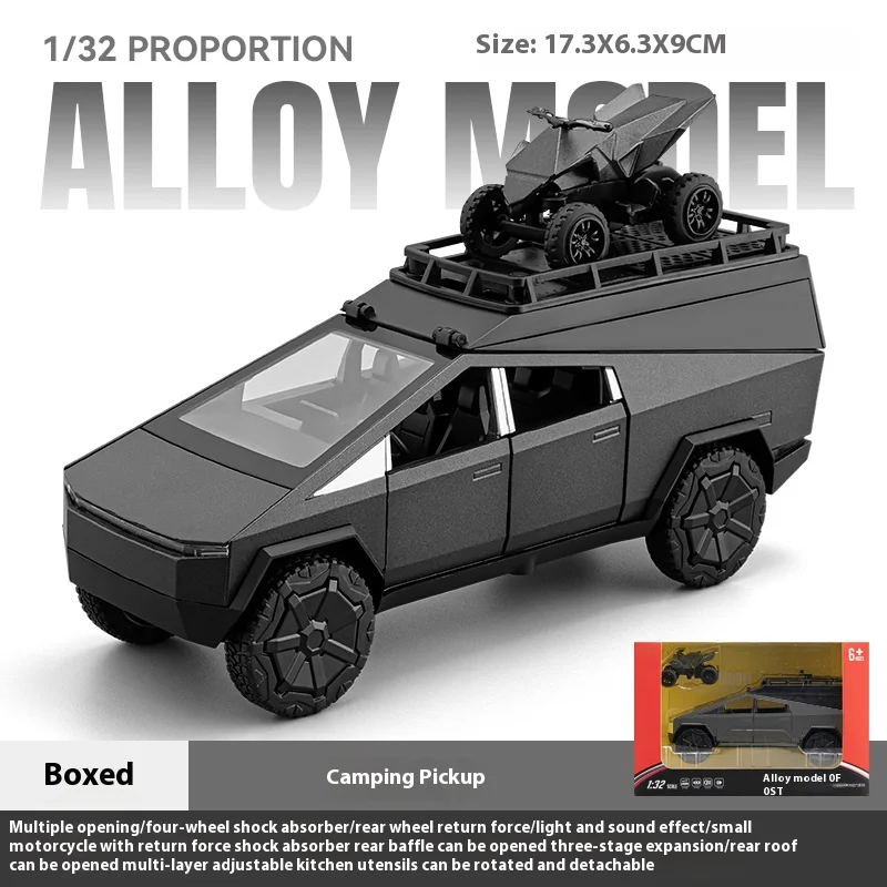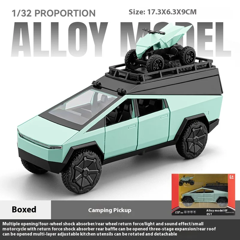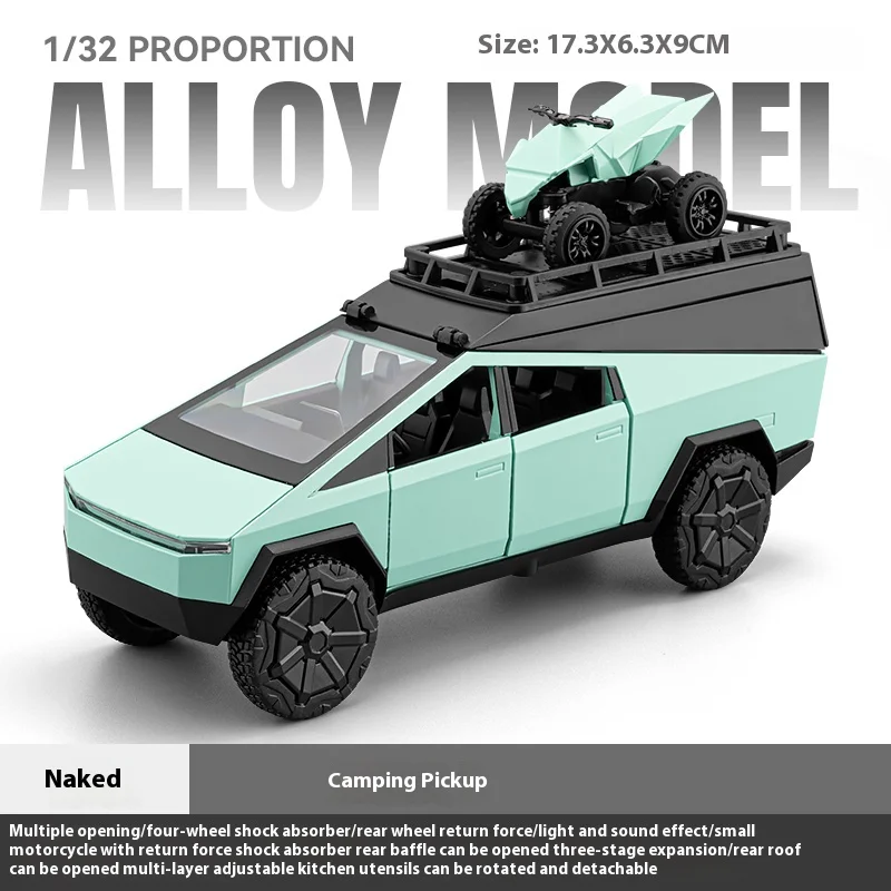Bring home the rugged adventure with this 1:32 scale Cyber RV Off-Road Diecast Model Car, crafted from durable alloy metal with an authentic off-road SUV design featuring detailed accents. Available in green, grey, or silver, it boasts integrated light and sound functions operated by simple batteries, offering an immersive experience. Its sleek, modern aesthetic highlights textured panels, prominent wheel arches, and a sturdy structure perfect for display or imaginative play. Suitable for children aged 4 and up as well as collectors, this high-quality model measures approximately 1:32 in scale, combining realism, durability, and aesthetic appeal for exciting off-road adventures.