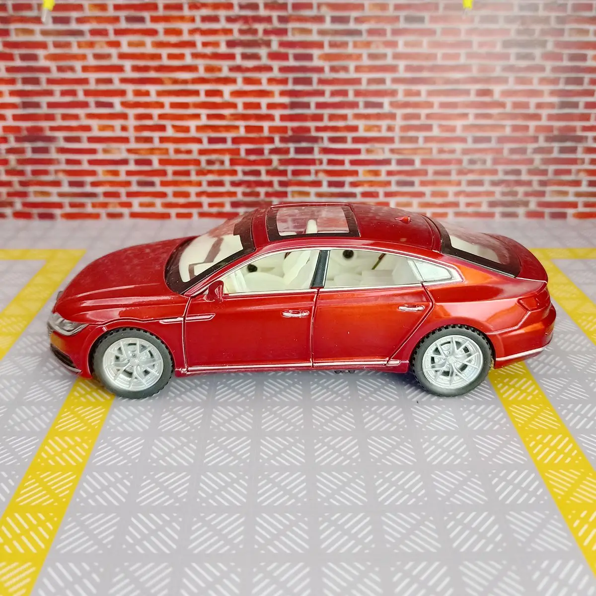 - Wheels feature silver alloy multi-spoke rims mounted on rubber tires replicating real car proportions and aesthetics.