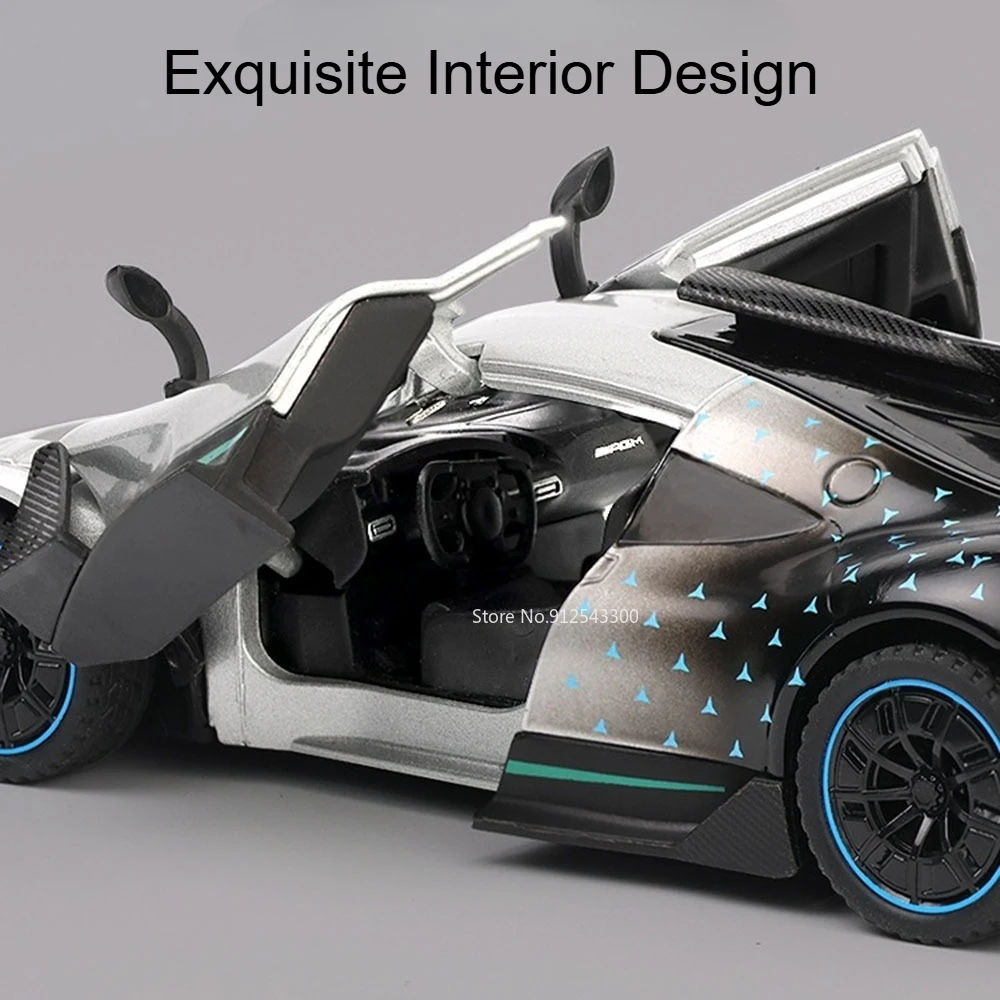 Experience the thrill of owning a meticulously crafted high-performance diecast car with this stunning 1:32 scale model. Made with an alloy body for durability and a plastic chassis for lightweight strength, this collectible features realistic rubber tires and detailed interior elements. Available in vibrant colors such as silver, black, white, and green, each model showcases sleek, aerodynamic contours that evoke speed and sophistication. Its impressive size—about 15.7 x 8.1 x 4 cm—fits perfectly in your collection or display shelf. Equipped with functional doors, pull-back mechanism, and integrated sound and light features, this model brings an immersive experience. Whether you're a passionate collector or a dedicated enthusiast, this high-simulation vehicle is designed to impress and inspire admiration.