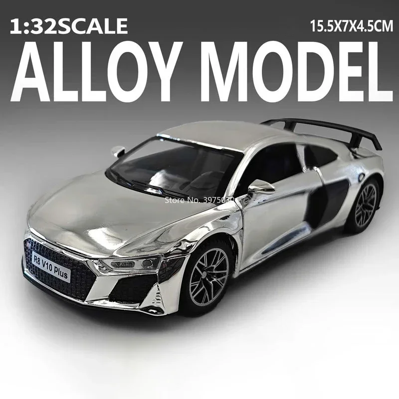 Experience the elegance of these 1:32 scale diecast car models available in striking gold, purple, and silver. Crafted with a durable metal body, plastic chassis, and rubber tires, each vehicle features openable doors, light and sound functions activated by included batteries, and a pull-back mechanism for dynamic movement. The Mercedes-Benz 300SL measures approximately 15 x 6 x 4.5 cm, while the Audi R8 V10 is about 15.5 x 7 x 4.5 cm, showcasing intricate details and a sleek vintage-inspired design with polished finishes, chrome bumpers, and realistic treaded tires. Perfect for collectors aged 14 and above, these miniature vehicles combine craftsmanship with playability.