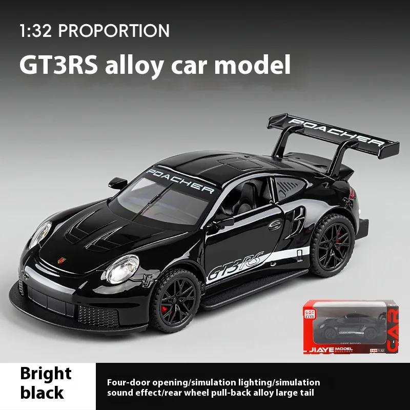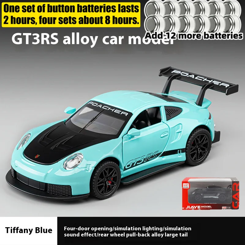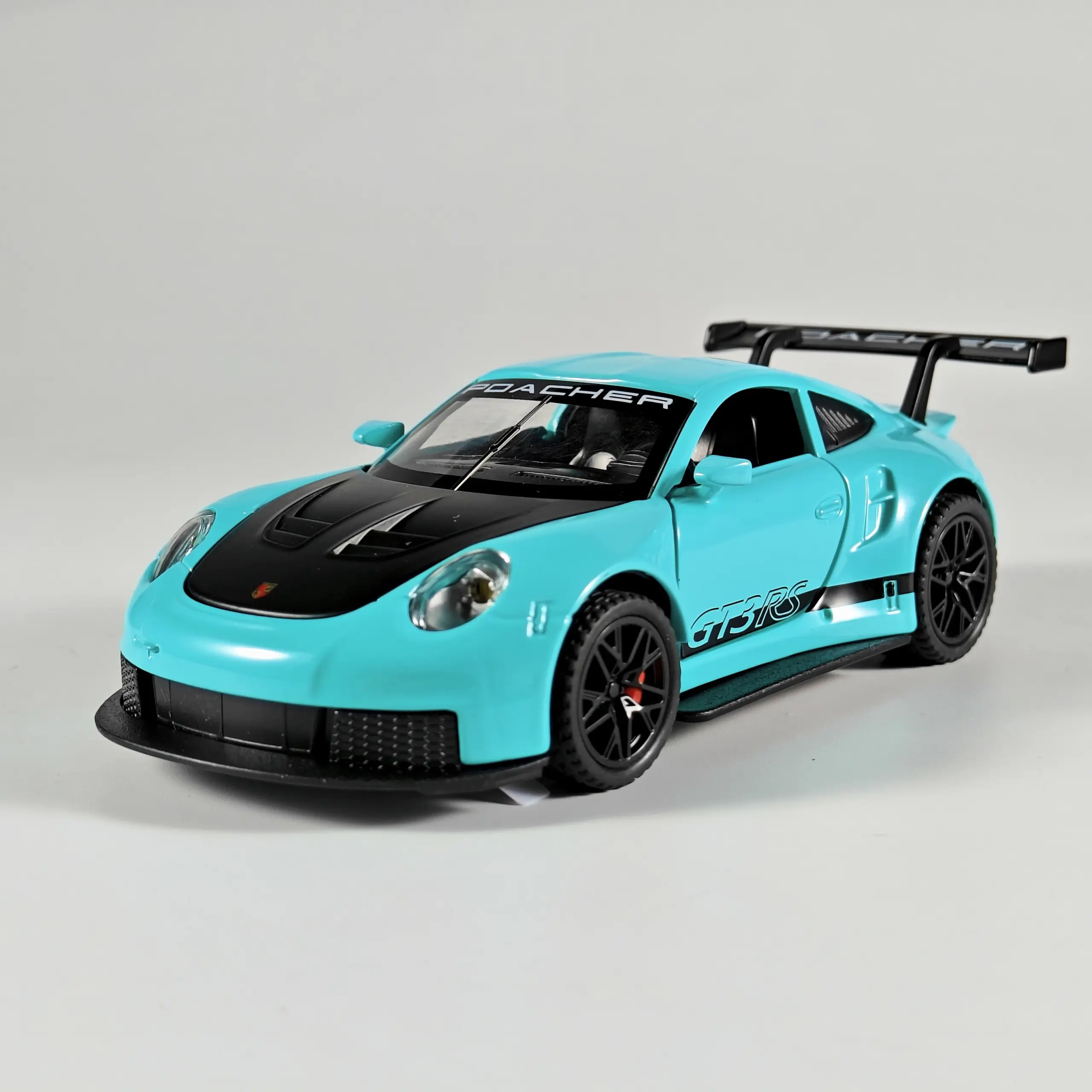Immerse yourself in the world of high-performance automotive excellence with this stunning 1:32 scale diecast model of the Porsche GT3 RS. Drenched in vibrant turquoise, this model captures the sleek and aerodynamic essence of the iconic sports car. With a robust metal construction, it showcases intricate detailing, including a prominent rear wing, black window frames, and a glossy finish that glistens as it catches the light. Let the realistic sound and light effects enhance your experience, making this a perfect display piece for any automotive enthusiast. Picture this impressive model in your collection, effortlessly drawing the eye and sparking conversations.
