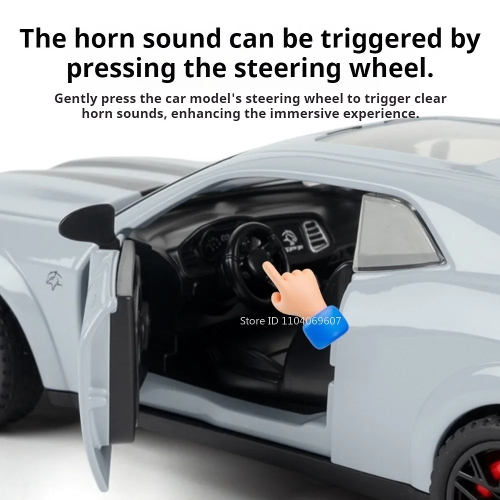 - Pressing the steering wheel or the front of the car triggers authentic sound effects and LED lights, mirroring real car behaviors and bringing the model to life.
