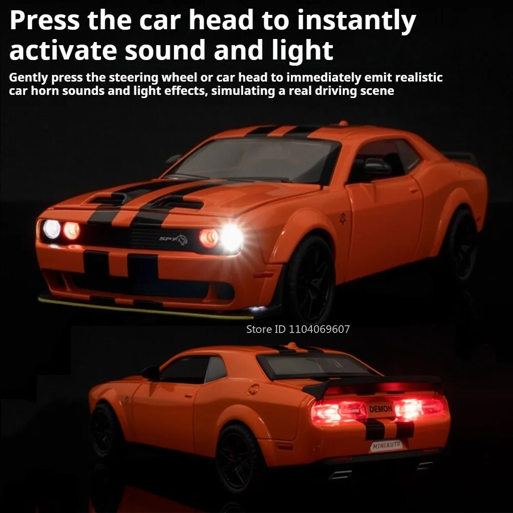 Experience the thrill of owning this highly detailed 1:32 scale diecast supercar model, masterfully crafted with an alloy metal body, plastic chassis, and realistic rubber tires. Its sleek design is accentuated by vibrant color options such as orange, grey, purple, black, red, yellow, and white, allowing you to choose your favorite style. The model boasts functional features including opening doors, hood, and trunk, giving you an interactive and immersive experience. Embedded sound and lighting effects create a lifelike driving simulation, activated by pressing the steering wheel or front of the car. Built for durability, this model withstands falls and collisions, making it ideal for collectors and enthusiasts who want a blend of realism and playability in their collection.