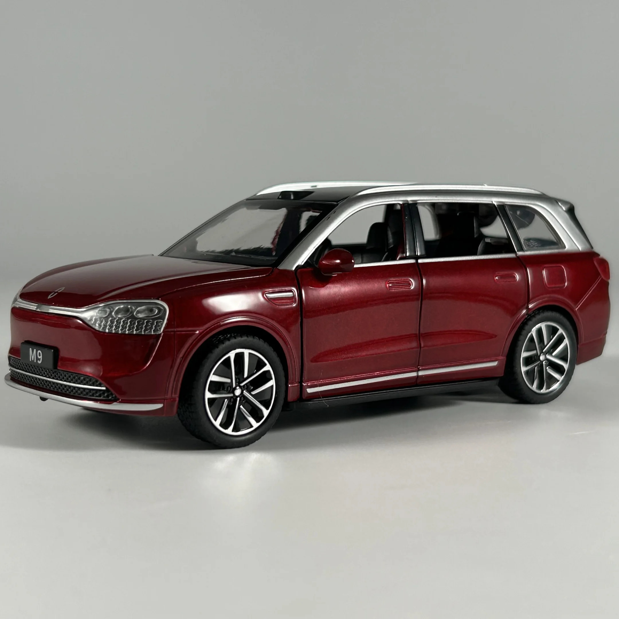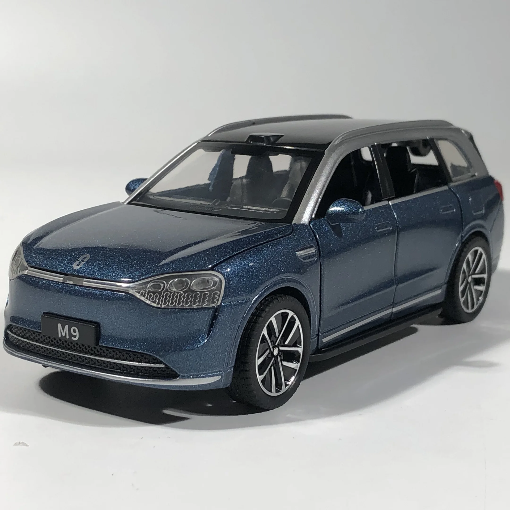 Experience the thrill of owning a beautifully crafted, realistic SUV with this 1:32 scale diecast model that captures modern automotive elegance. Finished in vibrant metallic blue, the model features contrasting silver accents on the roof and near the windows, adding a touch of luxury. The rear showcases prominent, high-gloss red tail lights that wrap subtly around the vehicle’s sides, along with a large, slightly tinted rear window and detailed rear windshield wiper. The finely crafted body includes precise panel lines, door handles, and side mirrors painted to match. The alloy wheels boast a multi-spoke design, paired with realistic black tires with detailed tread patterns, delivering an authentic look and feel. This collectible exudes craftsmanship and style, perfect for enthusiasts and collectors seeking to elevate their display.
