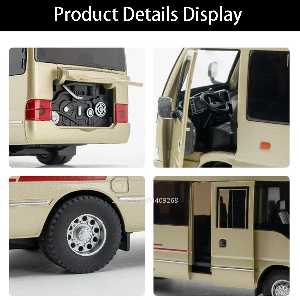 Experience the thrill of owning these highly detailed and realistic miniature vehicle models. Designed with precision, each model captures the sleek and modern aesthetic of real buses and vans in a compact 1:32 scale. Crafted from durable diecast metal with high-quality plastic chassis and rubber tires, these models showcase polished surfaces and intricate details, including opening doors, sound, and light effects that bring each vehicle to life. Available in striking colors—gold, black, and white—these models are perfect for collectors and enthusiasts aiming for authenticity and quality. Whether displayed on a shelf or used for creative play, these models evoke a sense of realism that will turn any space into a miniature transportation hub.