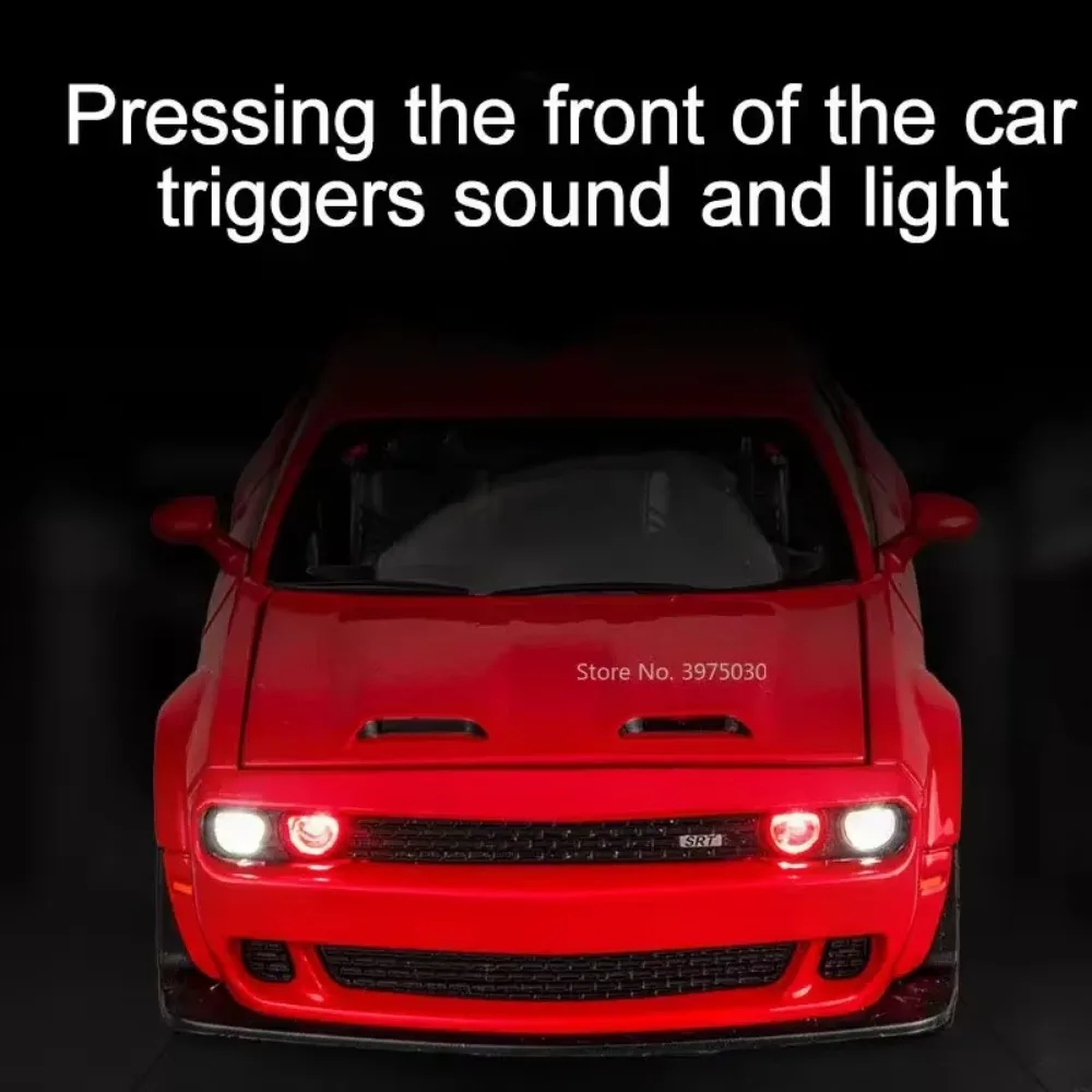 Enhance your collection or surprise a car enthusiast with this realistic, highly detailed Dodge Hellcat miniature. Its authentic design, functional features, and durable build ensure it becomes a treasured item. Whether displayed on a shelf, used as a conversation starter, or gifted to a fellow enthusiast, this model promises to impress. Its vibrant lighting and operational doors bring the thrill of high-performance driving into your home. Add this captivating collectible to your collection today and enjoy the craftsmanship and excitement it brings. Don’t miss the chance to own this exceptional diecast model!